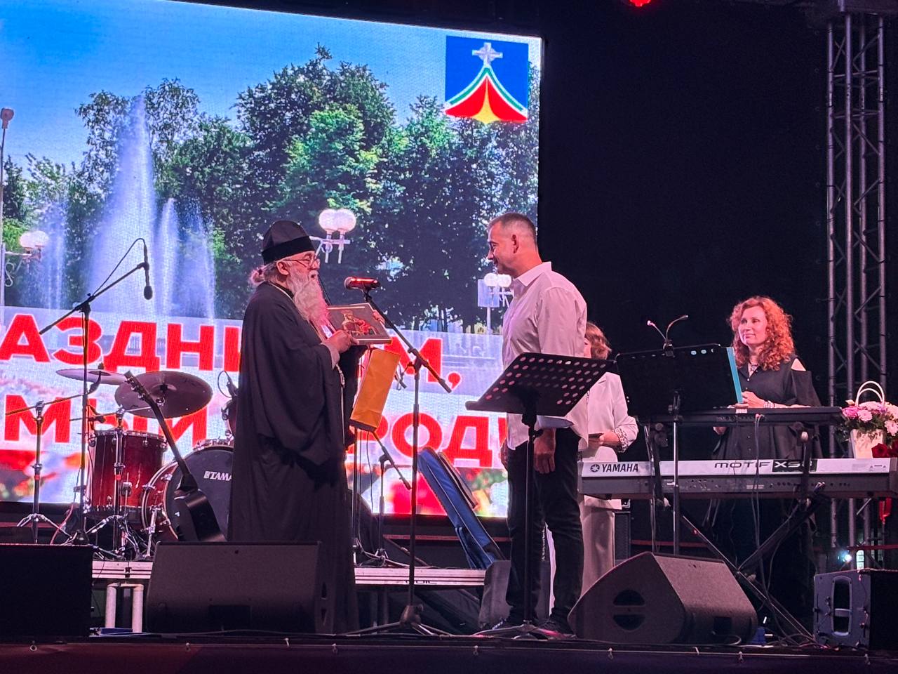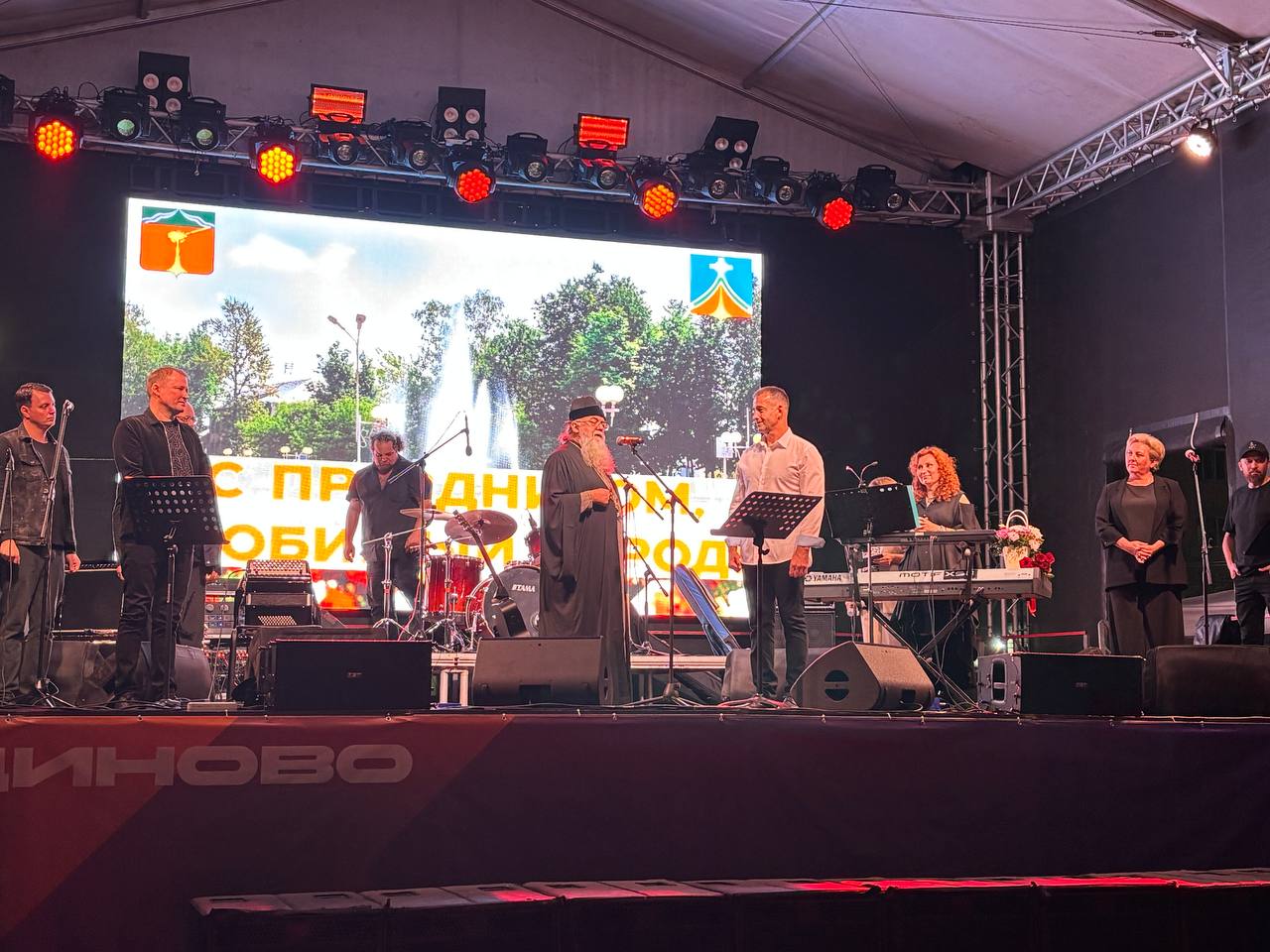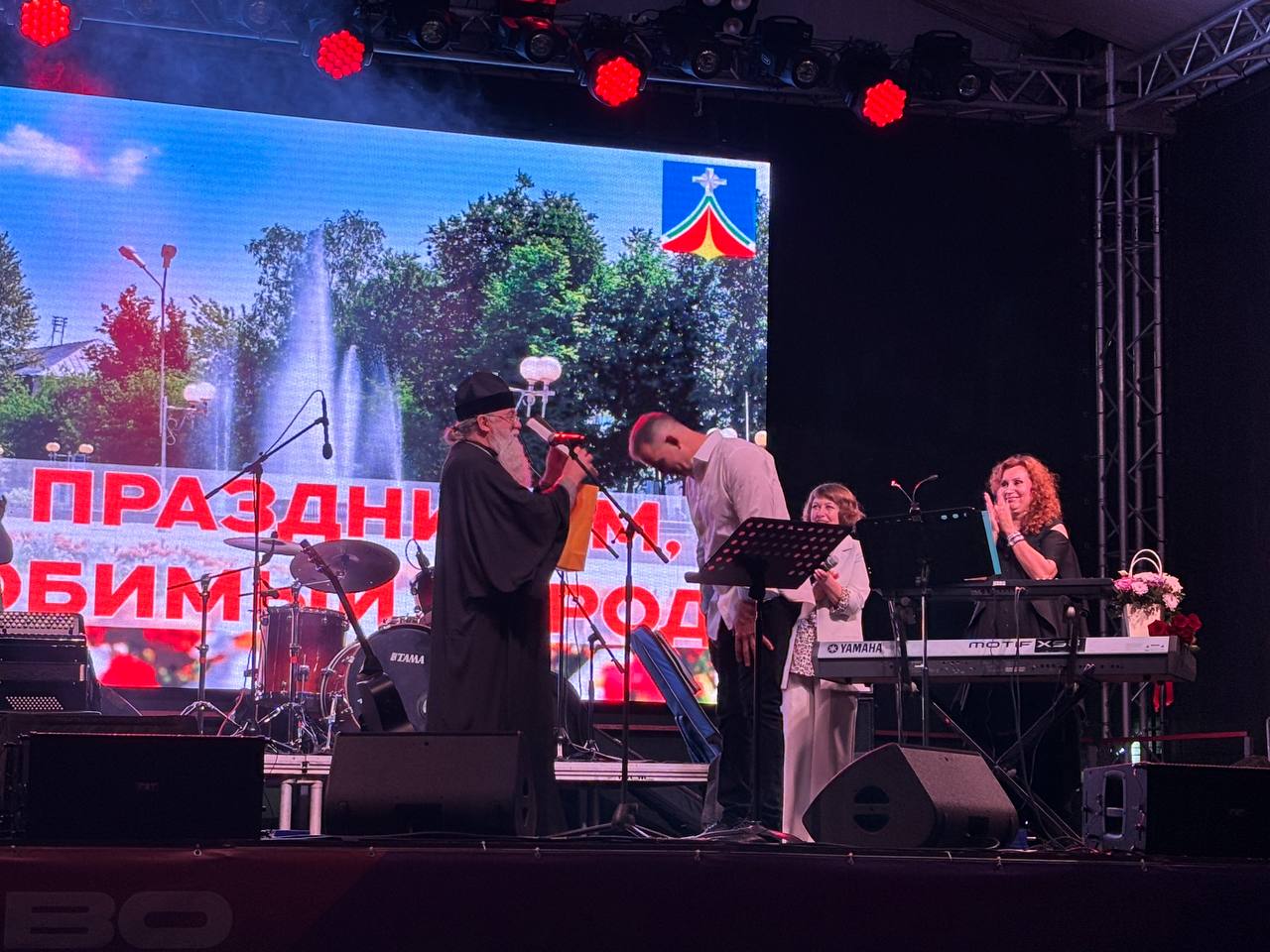Накануне Дня города Людиново, 8 сентября 2025 года, по приглашению администрации города, для жителей Людинова выступил с концертом народный артист России Дмитрий Певцов с оркестром «ПЕВЦОВЪ – ОРКЕСТР». Замечательные патриотические песни и стихи военных лет прозвучали в исполнении артиста, а также прекрасная песня «Пресвятая Дева Матерь Божия благая Богородица». В завершении концерта благочинный Людиновского округа настоятель Казанского собора протоиерей Алексий Жиганов сердечно поблагодарил Дмитрия Певцова и его коллег за замечательное исполнение всеми любимых песен, пожелав последующих успехов в творчестве и Божьего благословения. На молитвенную память батюшка подарил артисту икону Божией Матери «Избавление от бед страждущих», именуемой «Людиновская». С благодарением Дмитрий Певцов поклонился пред Образом Царицы Небесной и испросил священнического благословения.