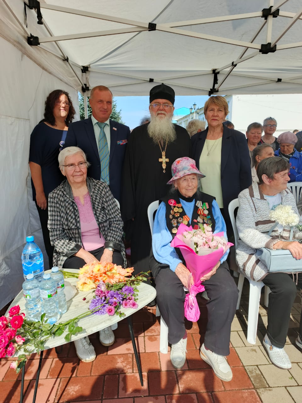В полдень протоиерей Алексий Жиганов принял участие в торжественном митинге на Площади Победи в честь Дня города, где также присутствовали главы администрации и города Людинова, школьники и жители города. На празднике чествовали старейшего ветерана Великой Отечественной войны Марию Матвеевну Власенкову, детей войны, возлагали живые цветы к Вечному огню, исполняли песни военных лет и замечательные танцевальные постановки на военную тематику.