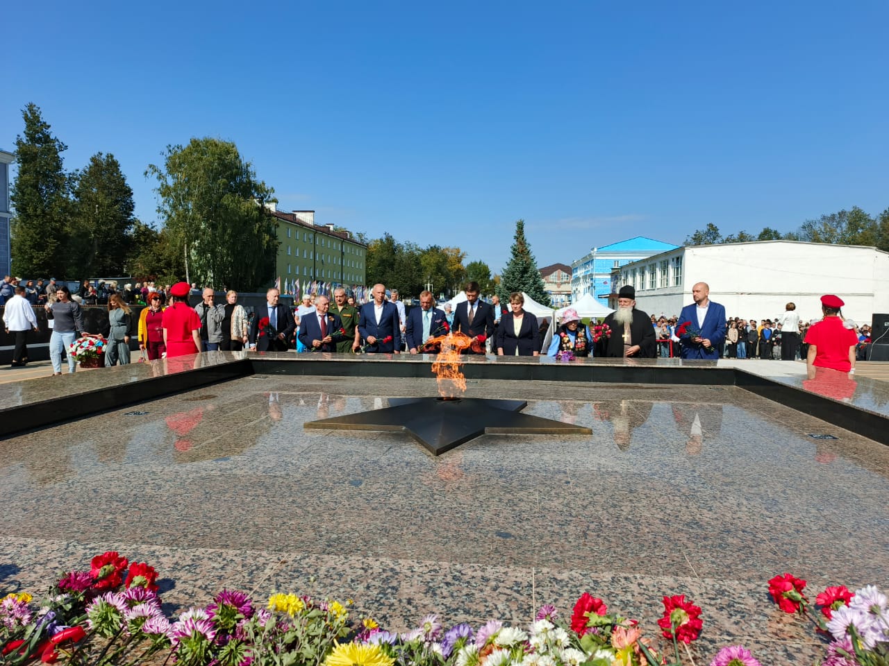 Отец Алексий поздравил всех с памятным днём для нашего города и призвал сохранять в своих сердцах память о тех страшных событиях и отдавать дань уважения погибшим: «Только так можно надеяться на то, что подобное больше никогда не повторится в человеческой истории. Это та самая незримая нить, которая связывает нас сегодняшних с нашими героическими предками и доказывает, что мы помним и чтим их подвиг, любим свое Отечество. Миллионы людей отдали жизни, чтобы мы с вами были свободными в великой стране. И мы обязаны помнить, ценить этот подвиг и воспитывать наших детей и внуков в духе патриотизма, уважения и любви к своей малой Родине, к нашей великой России, особенно в сегодняшнее непростое время. Вечная память героям».