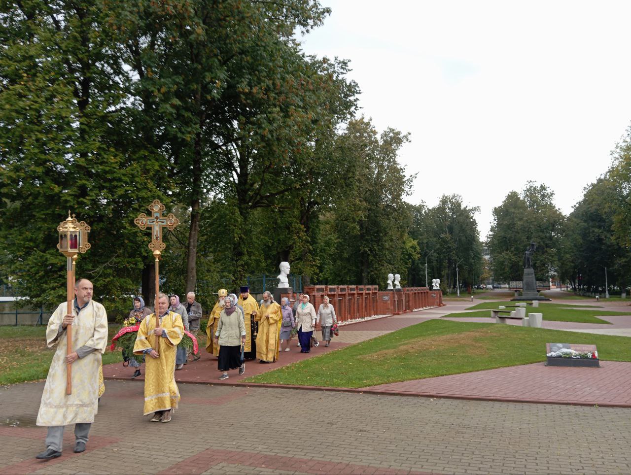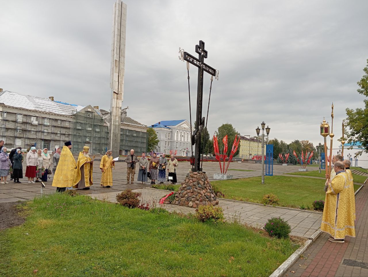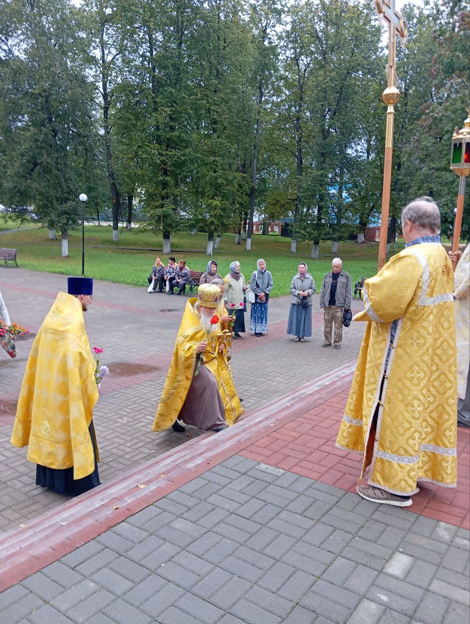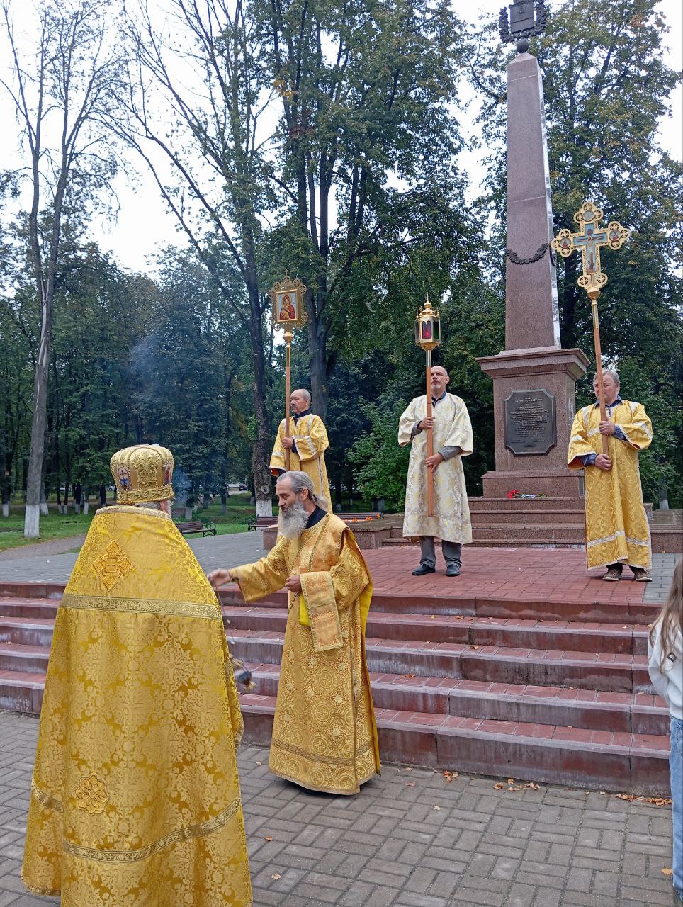 Заупокойная лития у Поклонного Креста в городе Людиново