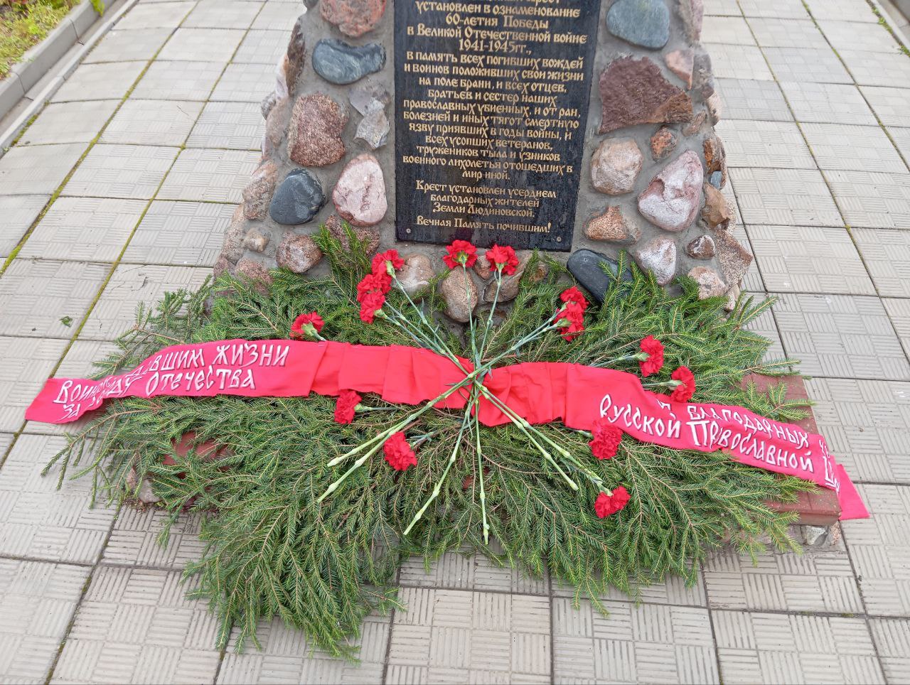 К подножию Поклонного Креста, к Вечному огню и памятной стеле «Людиново – город воинской доблести», к памятнику Людиновским подпольщикам (расположенному на Набережной) были возложены венок и цветы в память о погибших защитниках родного города.