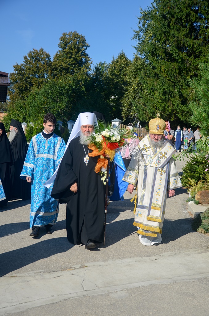 В завершении богослужения митрополит Климент поздравил архипастырей, наместника обители, братию, паломников и прихожан с престольным праздником и произнес проповедь.
