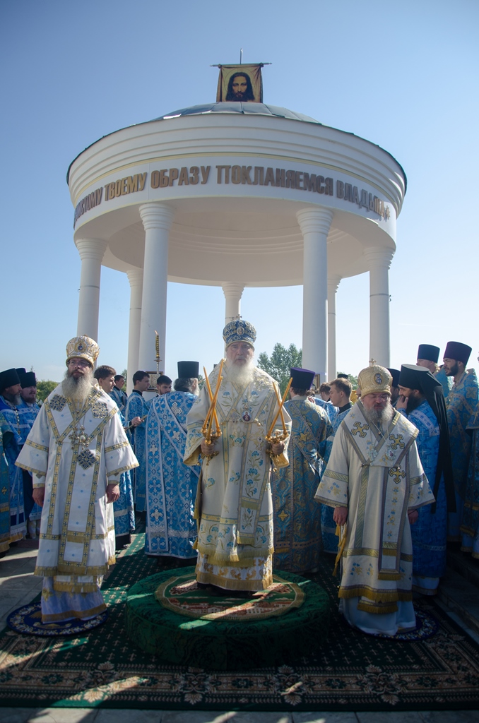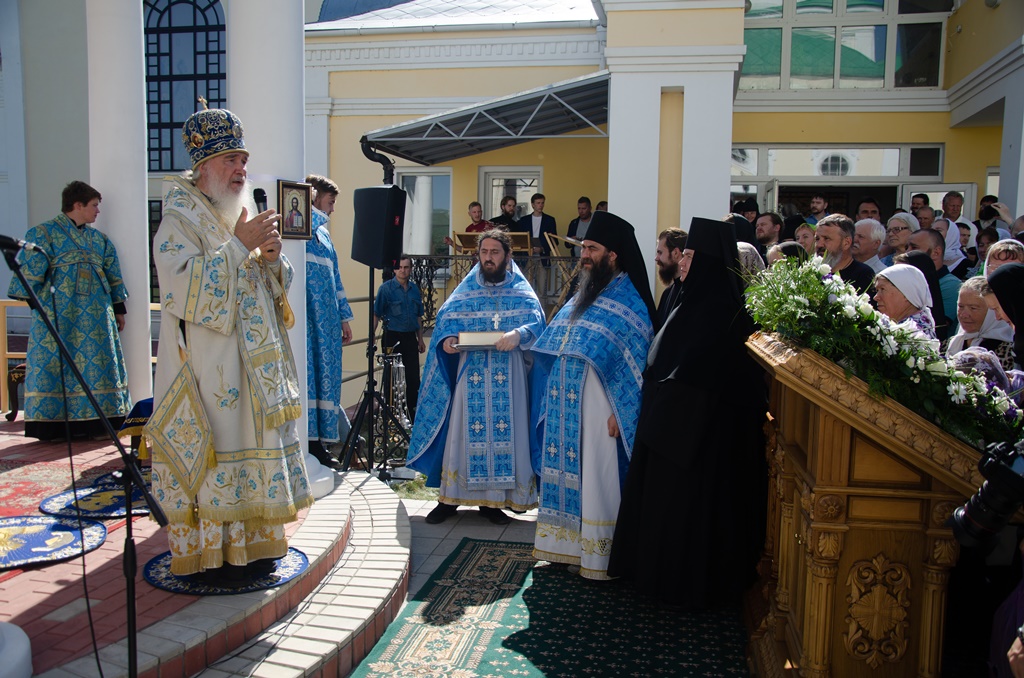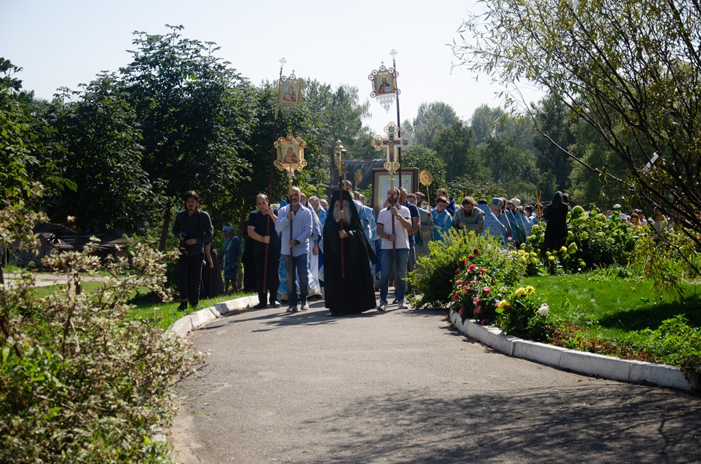 По окончании Литургии был совершен крестный ход вокруг храма и чин славления Всемилостивому Спасу, в честь престольного праздника и молитвословия по случаю попразднства праздника Успения Пресвятой Богородицы.