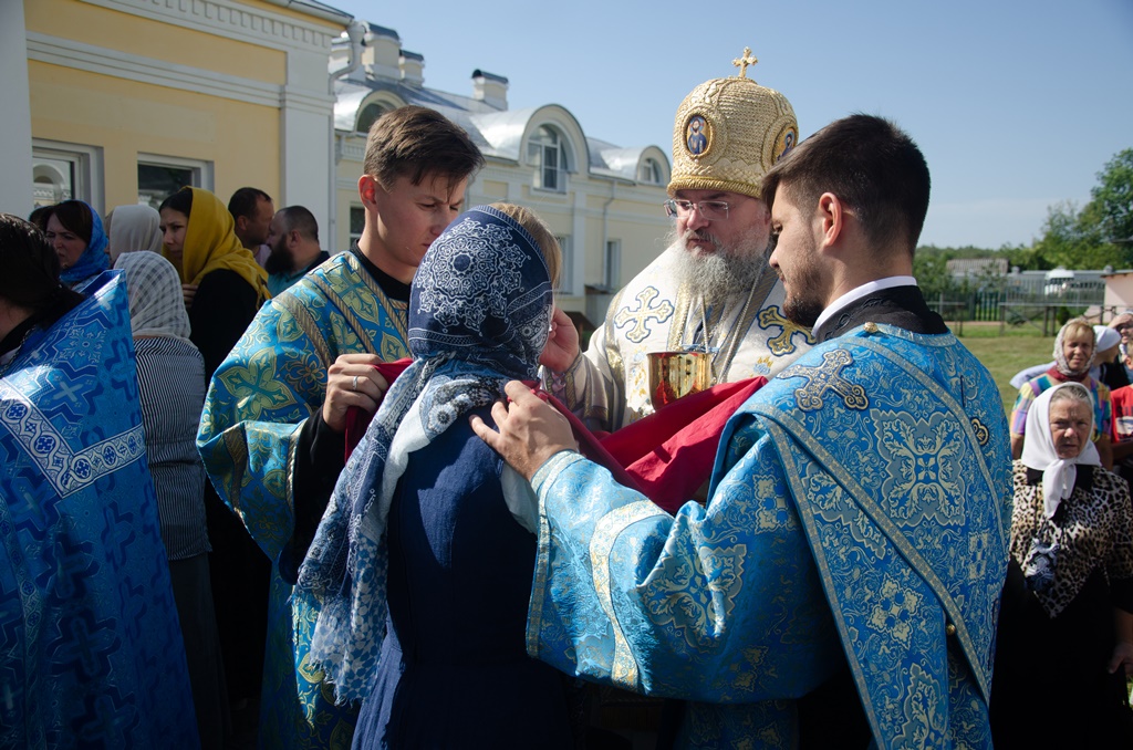 За богослужением молились настоятельница Свято-Успенской Феклиной женской пустыни с. Сенино игумения Виталия (Кочетова) и старшая сестра женской монашеской общины святых Жен Мироносиц в селе Клыково монахиня Иоанна (Павлова) с сестрами.