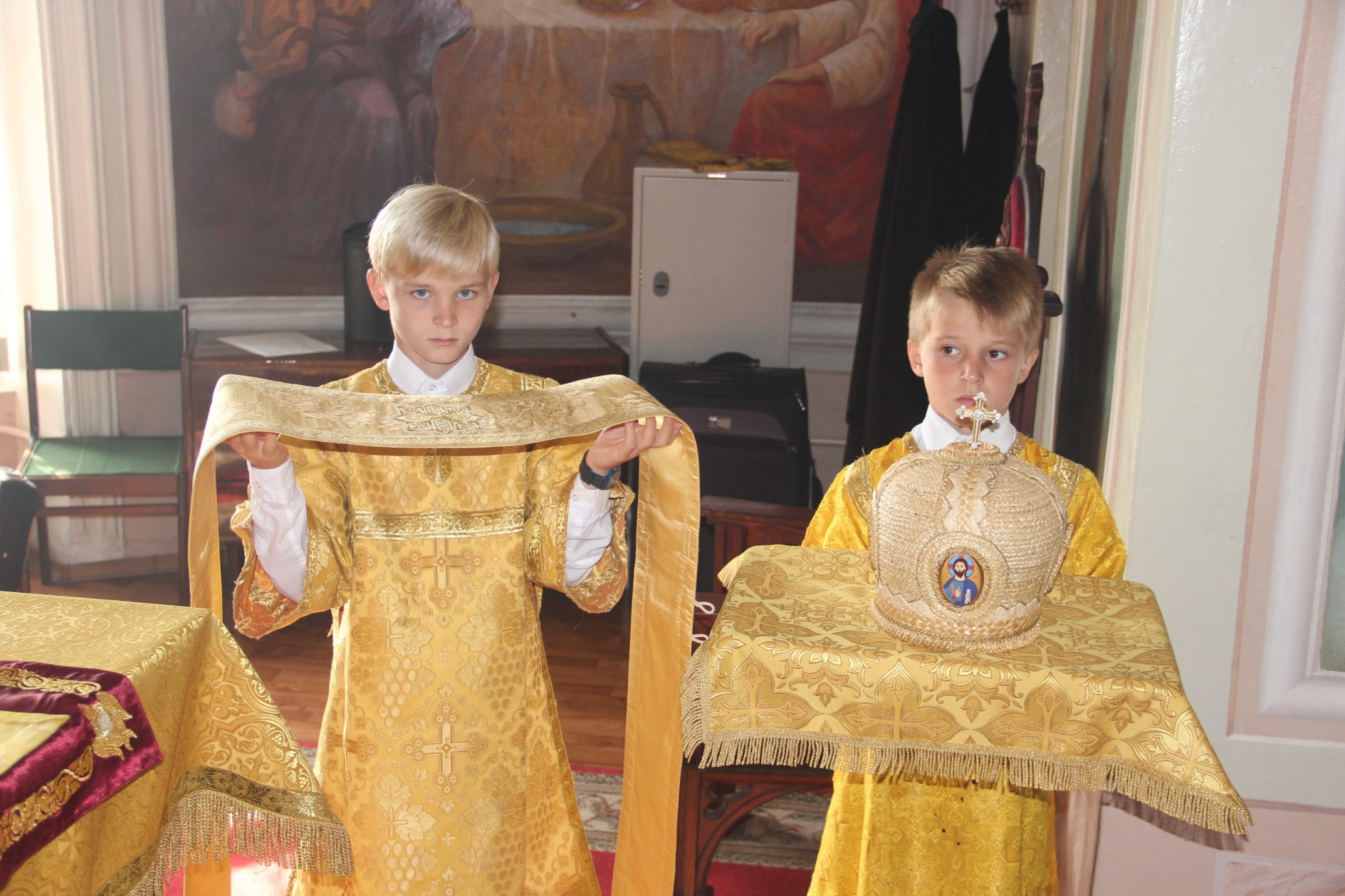 Архипастырю сослужили: духовник гимназии, настоятель храма – иерей Сергий Барыкин и директор школы иерей Антоний Лунин при архидиаконе Илиодоре (Гариянц), диаконе Евгении Васильеве и иеродиаконе Виталии (Павленко).