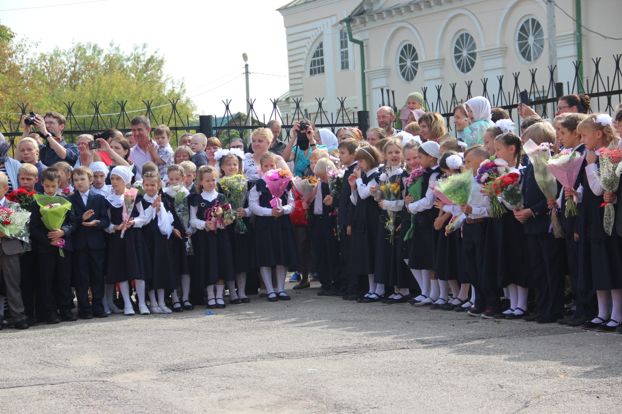 Затем во дворе гимназии прошла торжественная линейка посвященная началу нового учебного года.