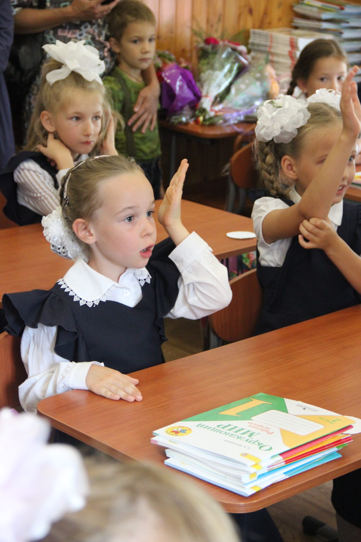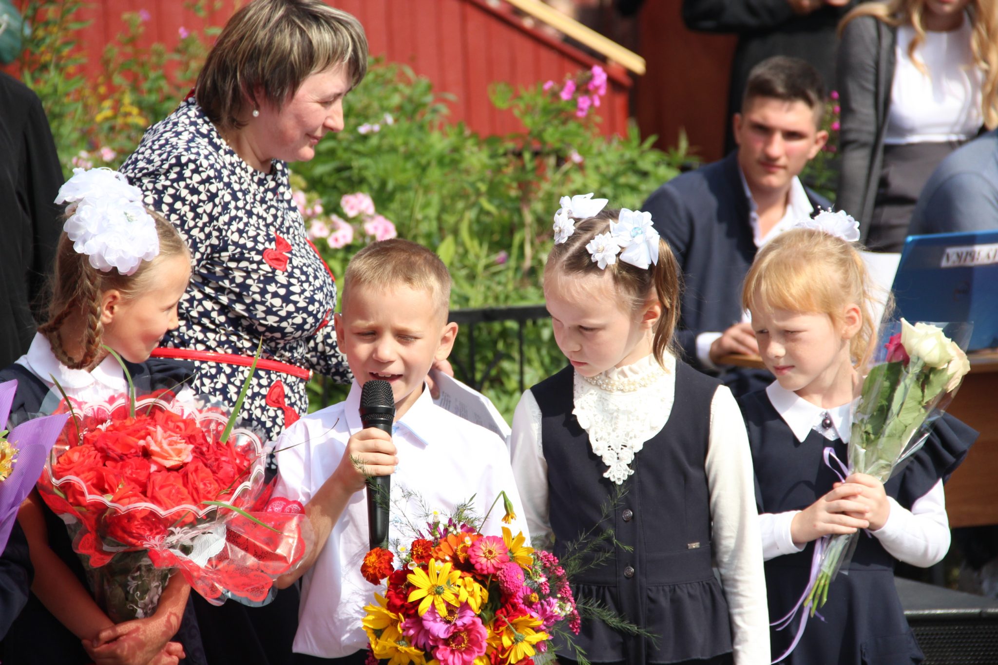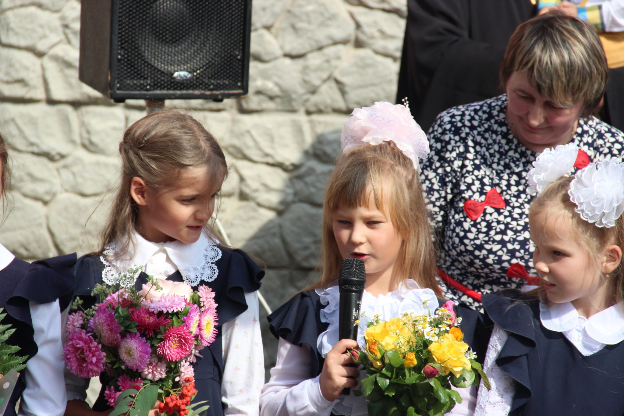 С поздравлениями выступили малыши – первоклассники и учащиеся одиннадцатого выпускного класса вручившие первоклашкам подарки.