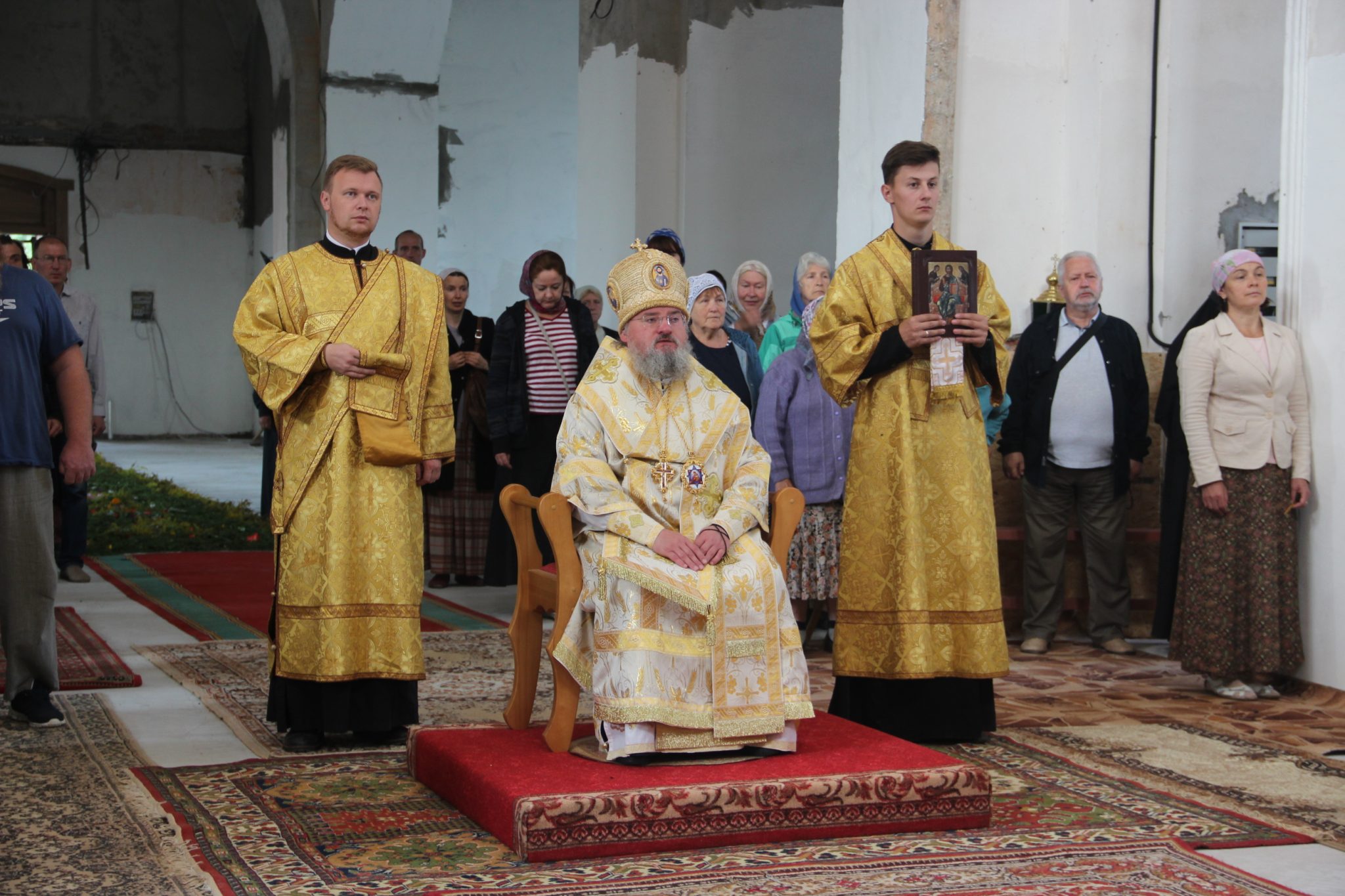 По отпусте литургии священнослужители совершили молебное пение о сохранении творения Божия и славление Божией Матери, а затем владыка обратился к богомольцам с архипастырским словом.