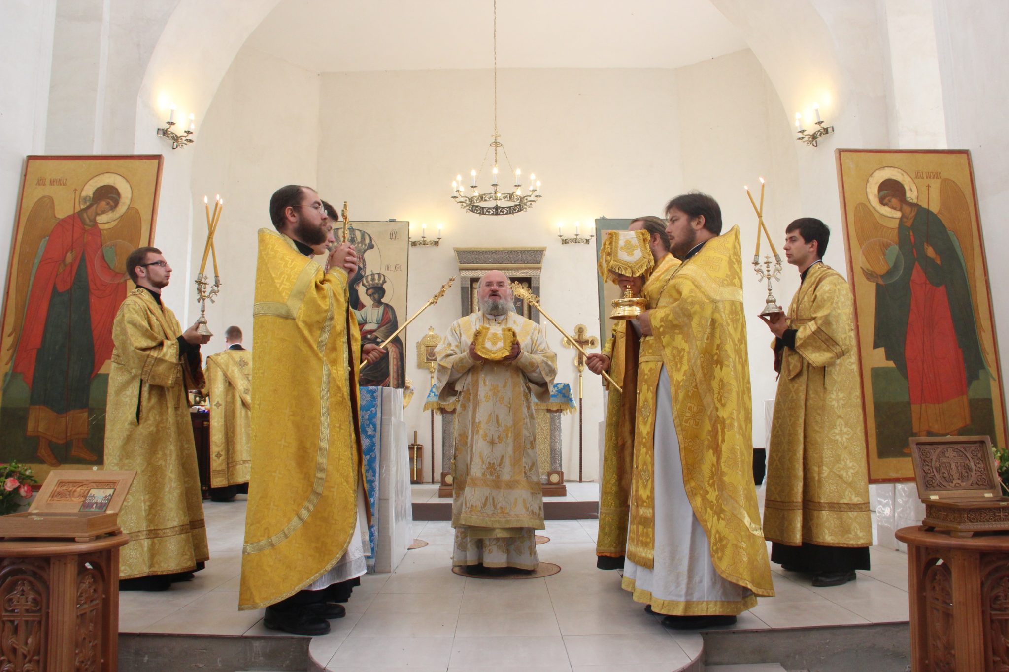 Архипастырю сослужили: протоиерей Антоний Хатунцев, иерей Михаил Пестов, диакон Евгений Ковригин и иеродиакон Виталий (Павленко).