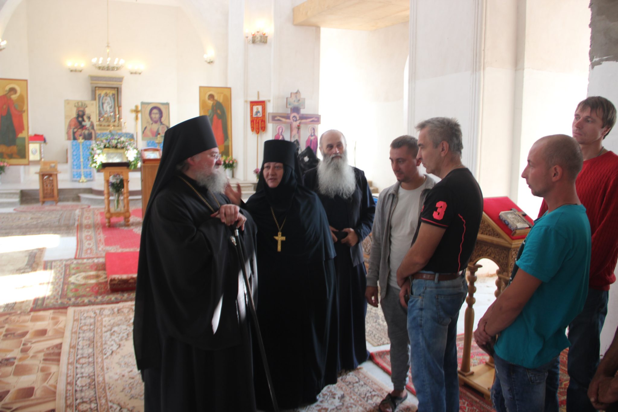 По окончании богослужения владыка в сопровождении матери Виталии осмотрел строительные работы в монастыре.