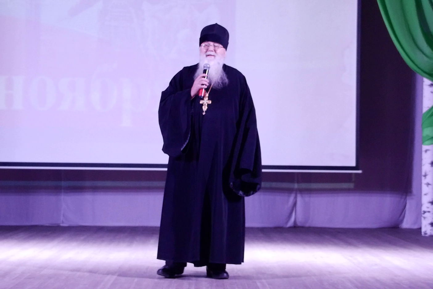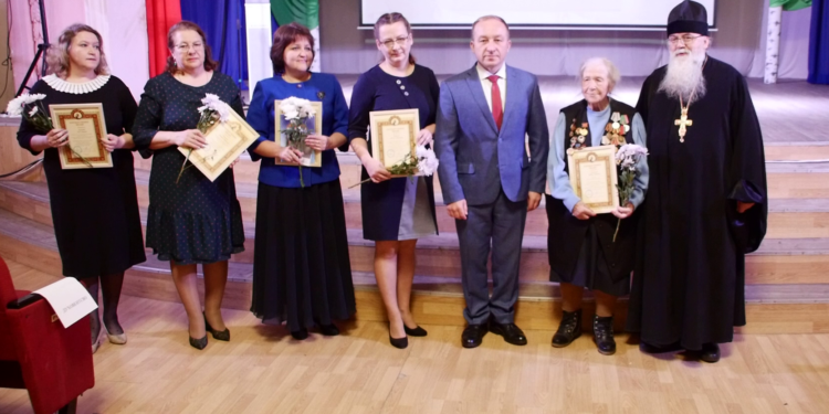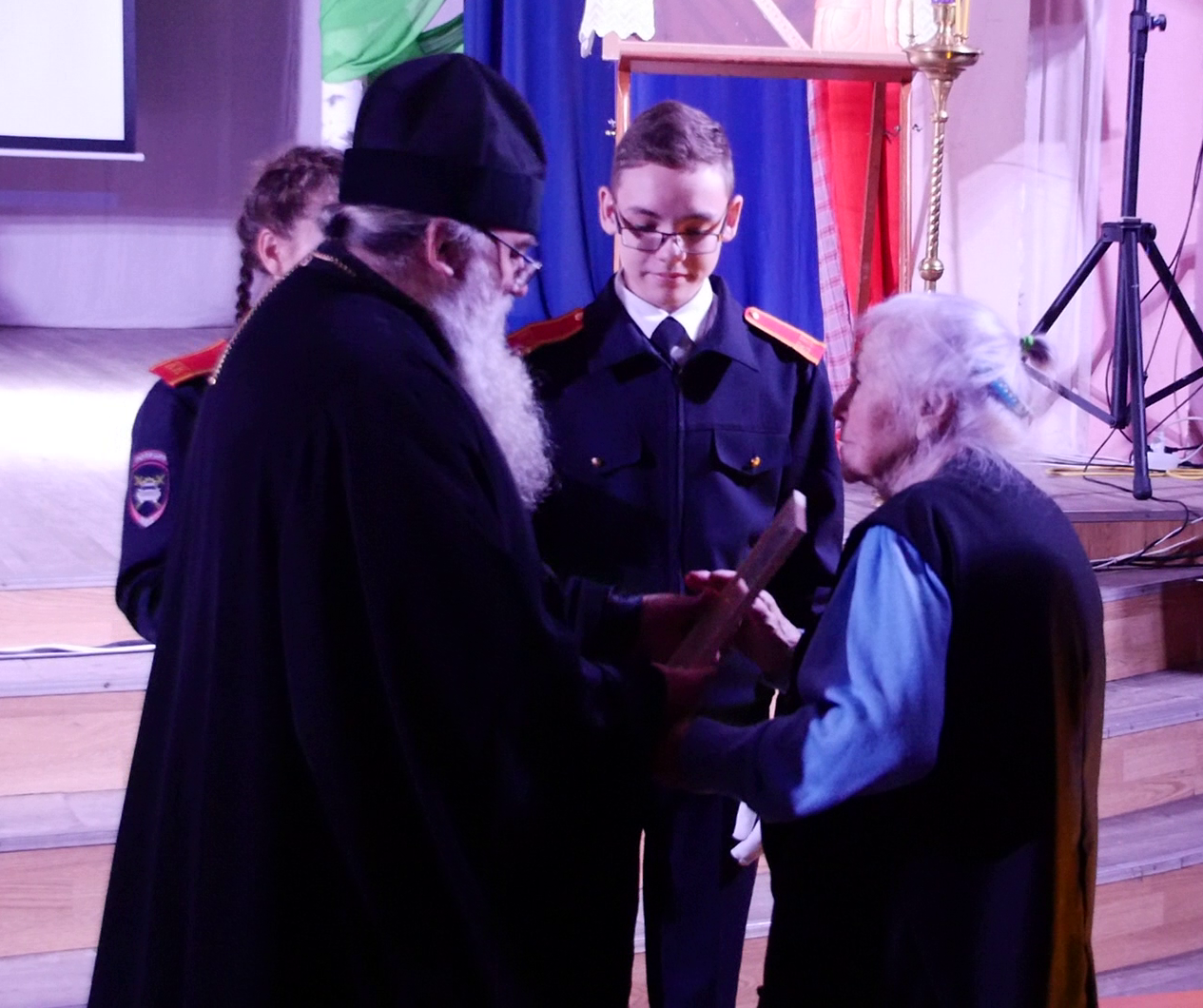 Затем участников конференции с праздником Днём народного единства и престольным праздником в честь Казанской иконы Божией Матери поздравил благочинный Людиновского округа протоиерей Алексий Жиганов. Отец Алексий пожелал всем заступничества Царицы Небесной, крепости духа и единения в непростое для всех нас время. Батюшка также преподнес благодарственные письма, подписанные епископом Козельским и Людиновским Никитой педагогическим работникам, а также людям, которые радеют за духовное, нравственное и патриотическое воспитание молодёжи. Среди награжденных была и ветеран Великой Отечественной войны Мария Матвеевна Власенкова – удивительная женщина, сила духа которой и жизнелюбие может только восхищать и быть примером для всех поколений.