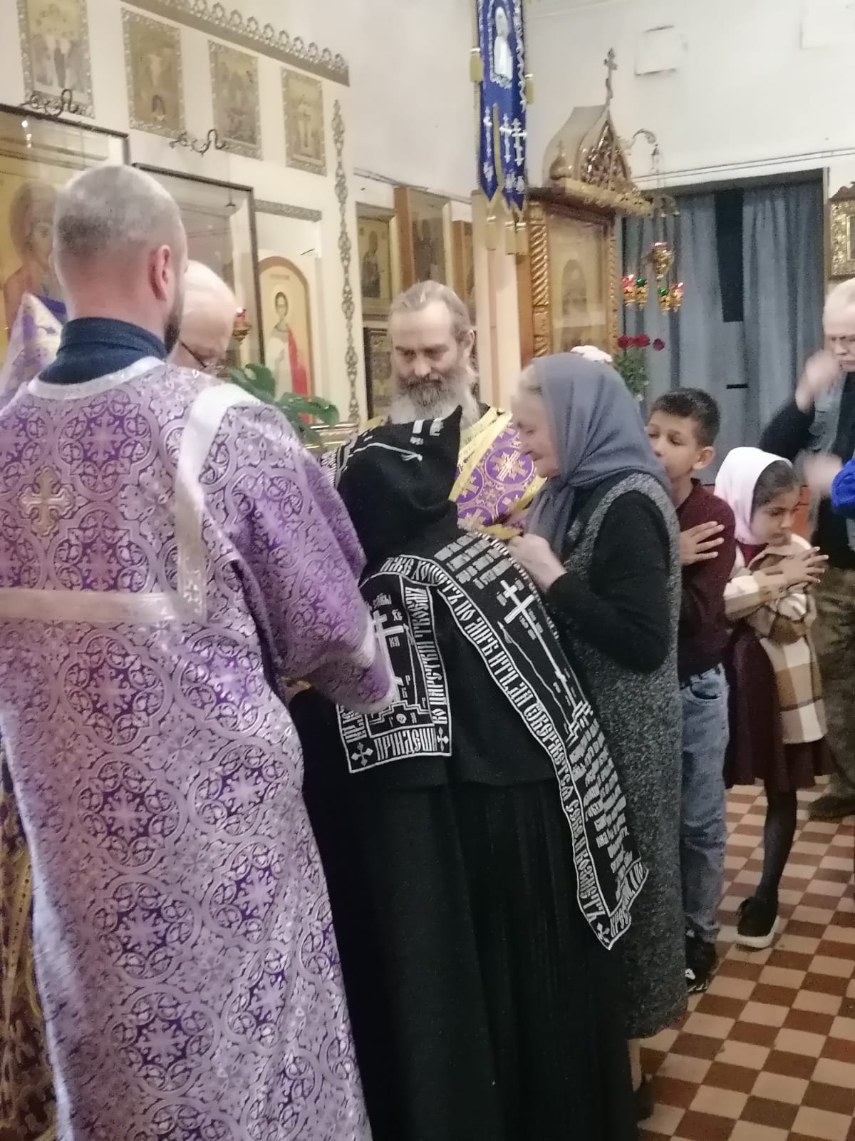 В конце службы настоятель отец Алексий освятил маскировочные сети для воинов на СВО, изготовленные тружениками приходской группы добровольцев «Тепло и забота солдату» (координатор Валентина Купрюхина).