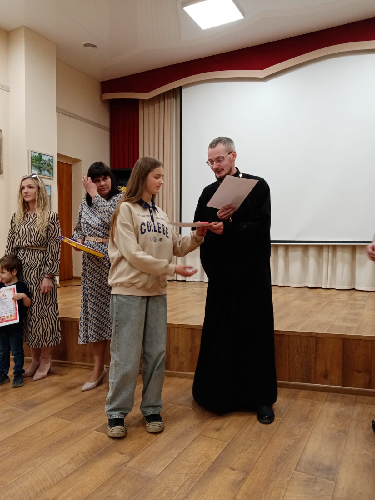 Украшением официальной части мероприятия были музыкальные подарки от творческих коллективов Воскресной школы «Светоч» Казанского собора (руководители: Галина Александровна Галий и Елена Ивановна Девина).