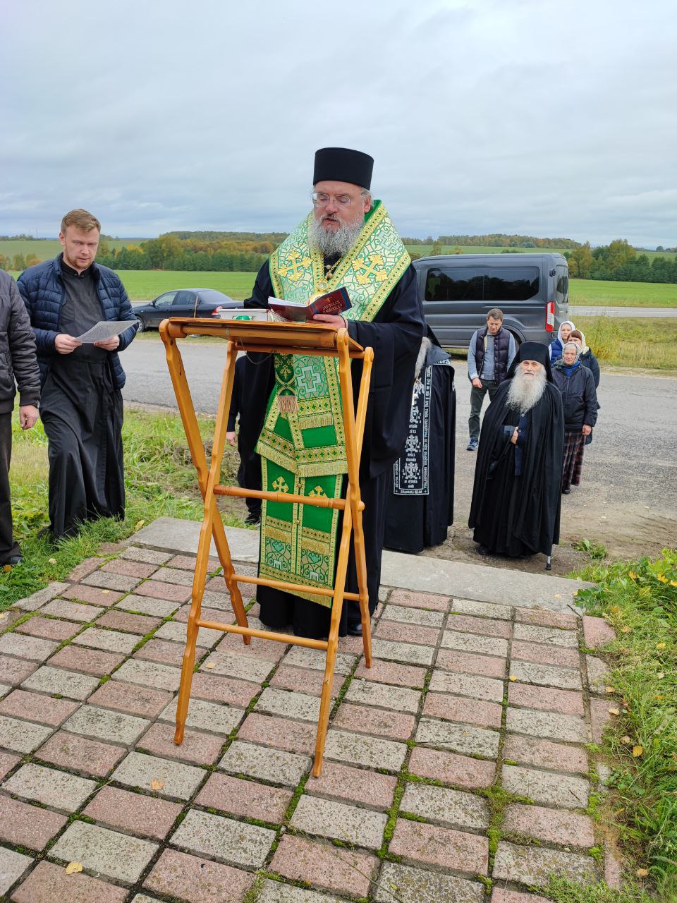 За молебном молились наместник обители игумен Михаил (Семенов) с братией и богомольцы прибывшие к часовне разделить молитву к преподобному благоверному князю Олегу Брянскому.