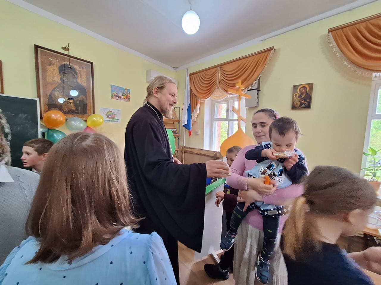 12 мая после Божественной литургии в воскресной школе храма в честь Благовещения Пресвятой Богородицы прошел детский праздник, посвященный празднику Пасхи. Для всех был организован обед. Детки подготовили сценку «Пасхальный колобок», спели песни, прочитали стихи. Настоятель храма иерей Сергий Барыкин обратился к детям со словами поздравления. В конце мероприятия всем детям и взрослым были подарены сладкие подарки.
