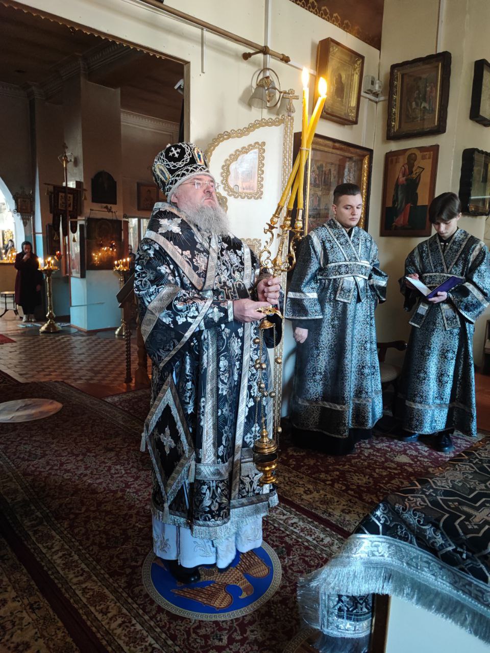 7 марта 2025 года, в пятницу первой седмицы Великого поста, епископ Никита литургию Преждеосвященных Даров в Казанском соборе города Людиново.
