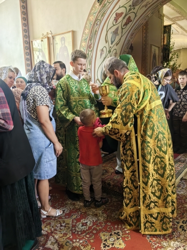 По окончании Литургии был совершен молебен Святому Духу и Крестный ход вокруг храма. Архипастырь и священнослужители окропили прихожан и паломников святой водой.