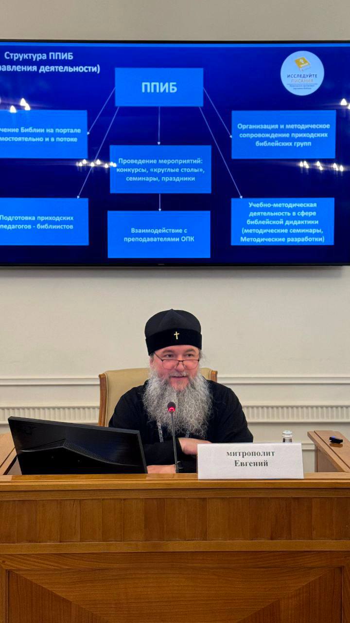 «Патриаршая программа изучения Библии призвана стать системообразующим элементом приходского просвещения, – отметил в своем выступлении митрополит Евгений. – Наша общая задача – создать условия, при которых глубокое и регулярное изучение Священного Писания станет неотъемлемой частью жизни каждого прихода».
