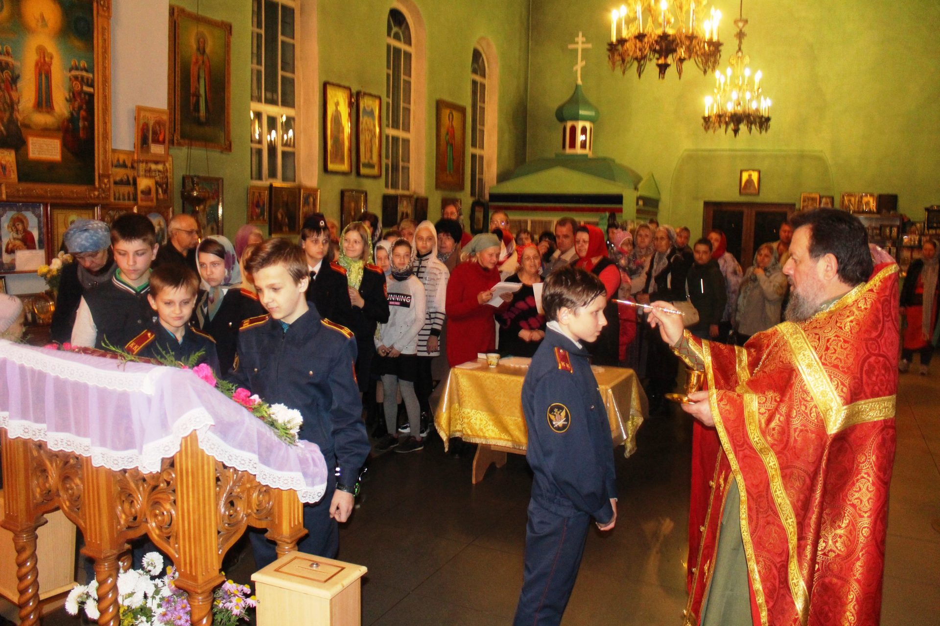 Вечером, молебне с акафистом святому Царю- мученику Николаю, отцу Василию сослужил настоятель храма праведного Лазаря Четверодневного протоиерей Михаил Карпенко. На молебне присутствовали кадетские классы МКОУ «Средняя общеобразовательная школа №6 имени Героя Советского Союза А.И.Свертилова»
