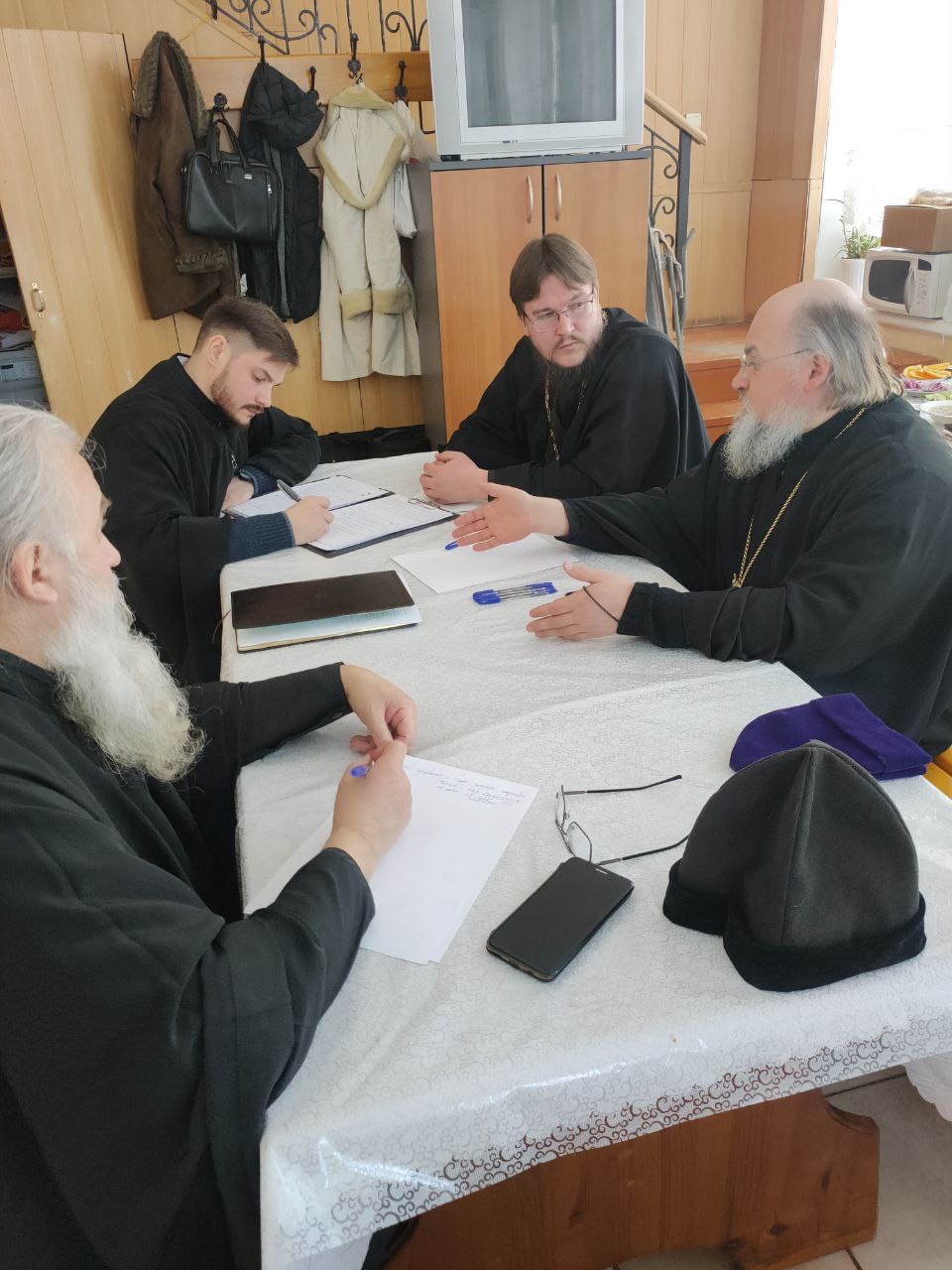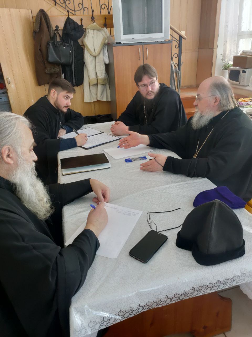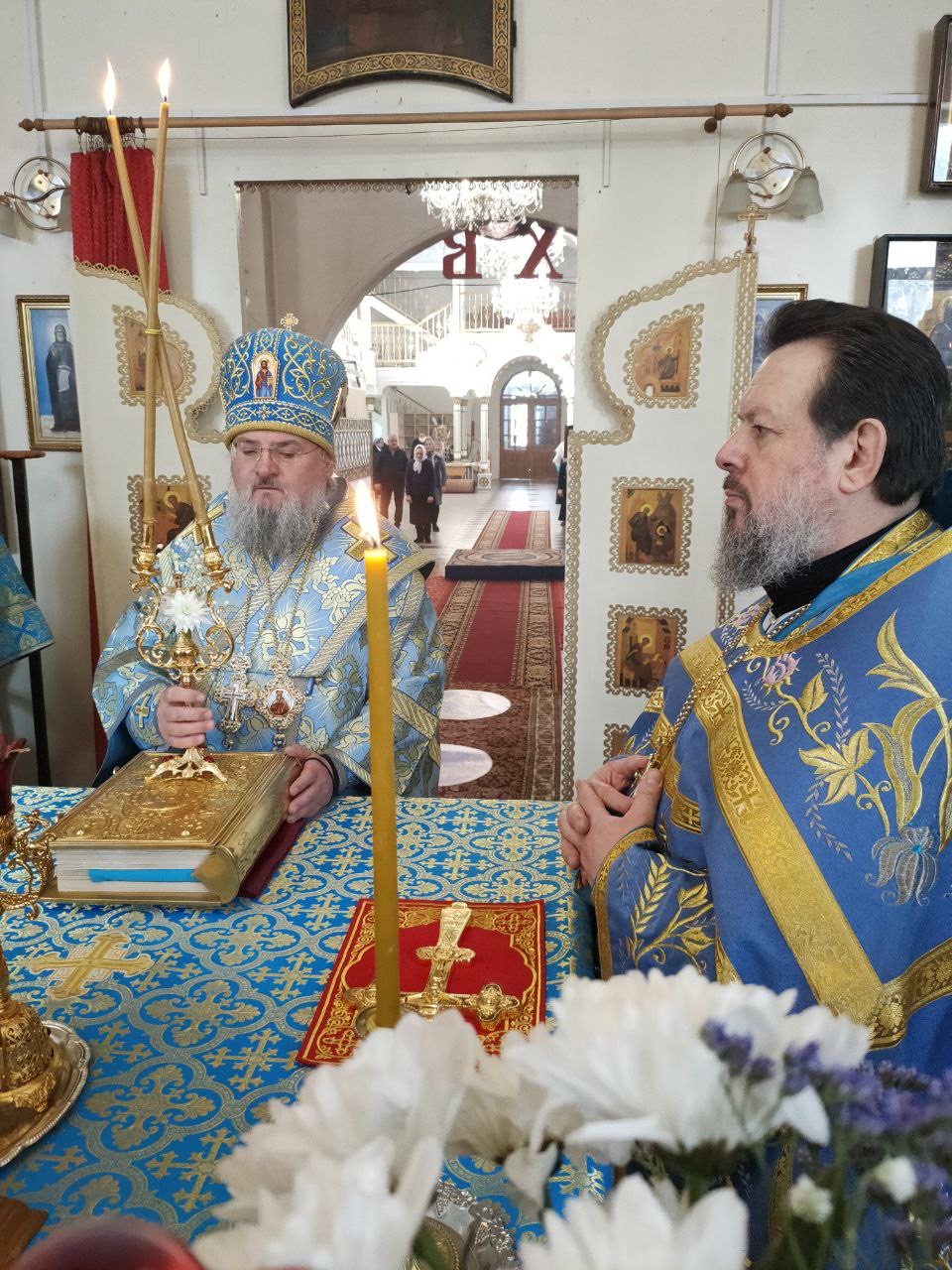 Архипастырю сослужили: настоятель собора, духовник епархии протоиерей Алексий Жиганов, благочинный Людиновского округа протоиерей Василий Биляк, протоиерей Антоний Хатунцев, иерей Дионисий Куваев, клирик Казанского собора иерей Алексий Сначев, диакон Евгений Ковригин и диакон Евгений Васильев.