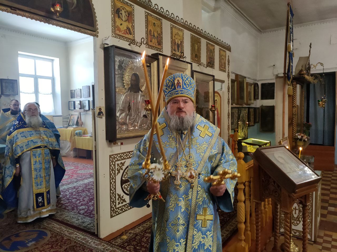 Владыка поздравил всех прихожан с праздником, пожелав заступничества Царицы Небесной, любви к ближнему и крепкой веры: «Нужно всегда верить, что все, чтобы вы не попросили в своих молитвах ко Господу, Царице Небесной, обязательно вам дастся, но только в той мере, в которой вам это будет полезно. Молится нужно непрестанно, даже в трудах и заботах, призывая Милость Господа, молясь Матери Божией, прося заступничества всех святых угодников. Видя наше усердие и нашу веру, непременно Господь поможет, а Богородица защитит Своим Материнским Покровом от всех бед».