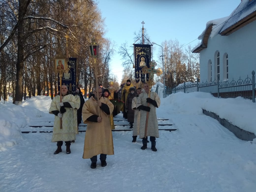 После Крестного хода, уже в храме, был совершен праздничный молебен о ныне здравствующих воинах, защитниках Отечества.