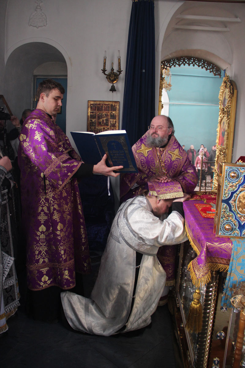 Перед началом богослужения духовник епархии протоиерей Алексий Жиганов, совершив уставные молитвословия перед началом таинства Покаяния, принял исповедь собравшегося духовенства.