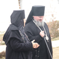 После отпуста литургии архипастырь обратился к молящимся со словом назидания. Владыка поздравил настоятельницу монастыря игуменью Анастасию с днем рождения и пятнадцатилетним юбилеем возведения в сан игумении и преподнес ей святую просфору.