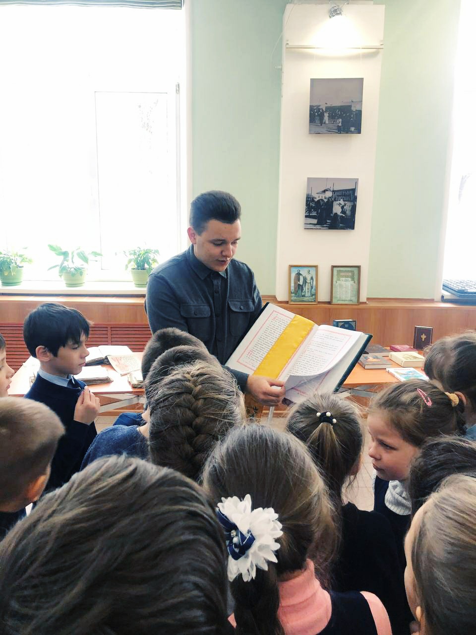 Методист по работе с молодежью Даниил Денисов рассказал об истории книги, о первых книгопечатниках, Первые книги были рукописными, богато украшенными и очень дорогими. Так же он рассказал о роли православной книги, о том, как нужно обращаться с книгой, особенно с православной, о значении духовной литературы в жизни православного человека и его духовном возрастании. ​