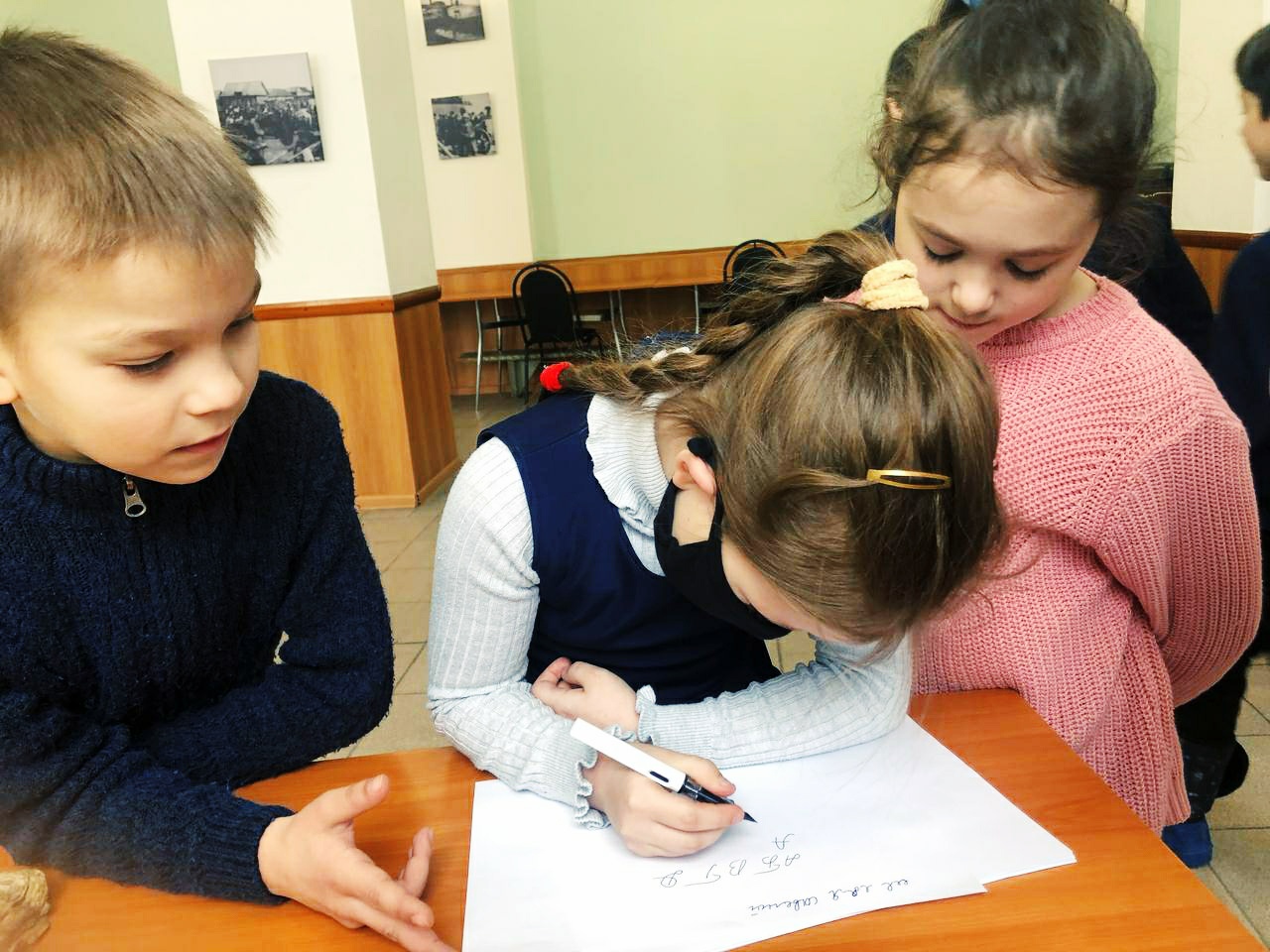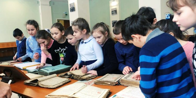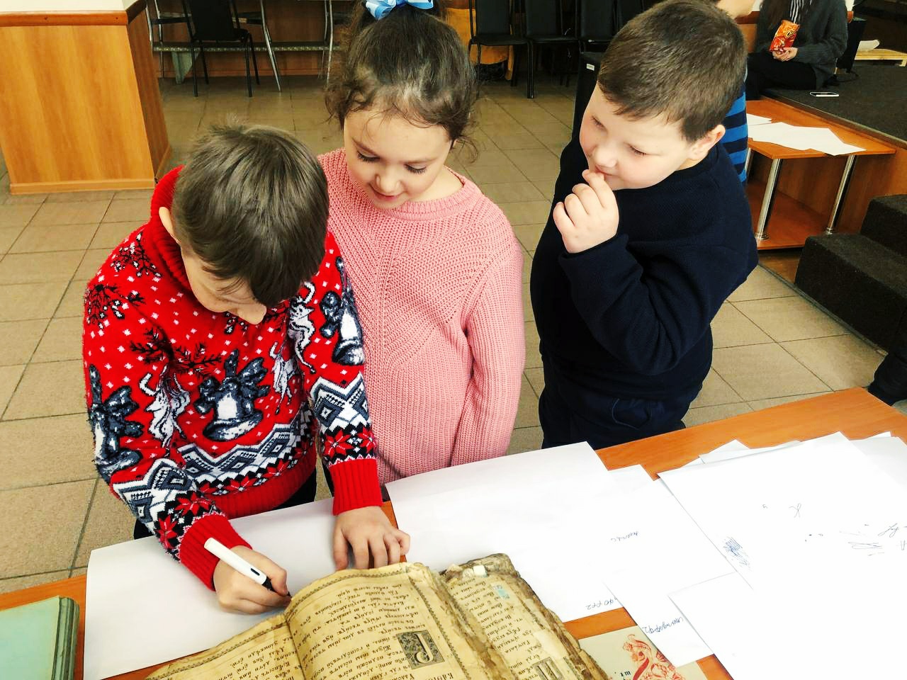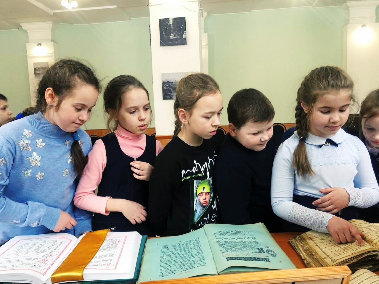 С большим интересом дети рассматривали старинные богослужебные книги: Библию, Апостол, Часослов и Псалтирь. Пробовали читать и старались понять прочитанное. Сами попробовали пописать пером с чернилами. Также дети познакомились с современной духовной литературой. ​
