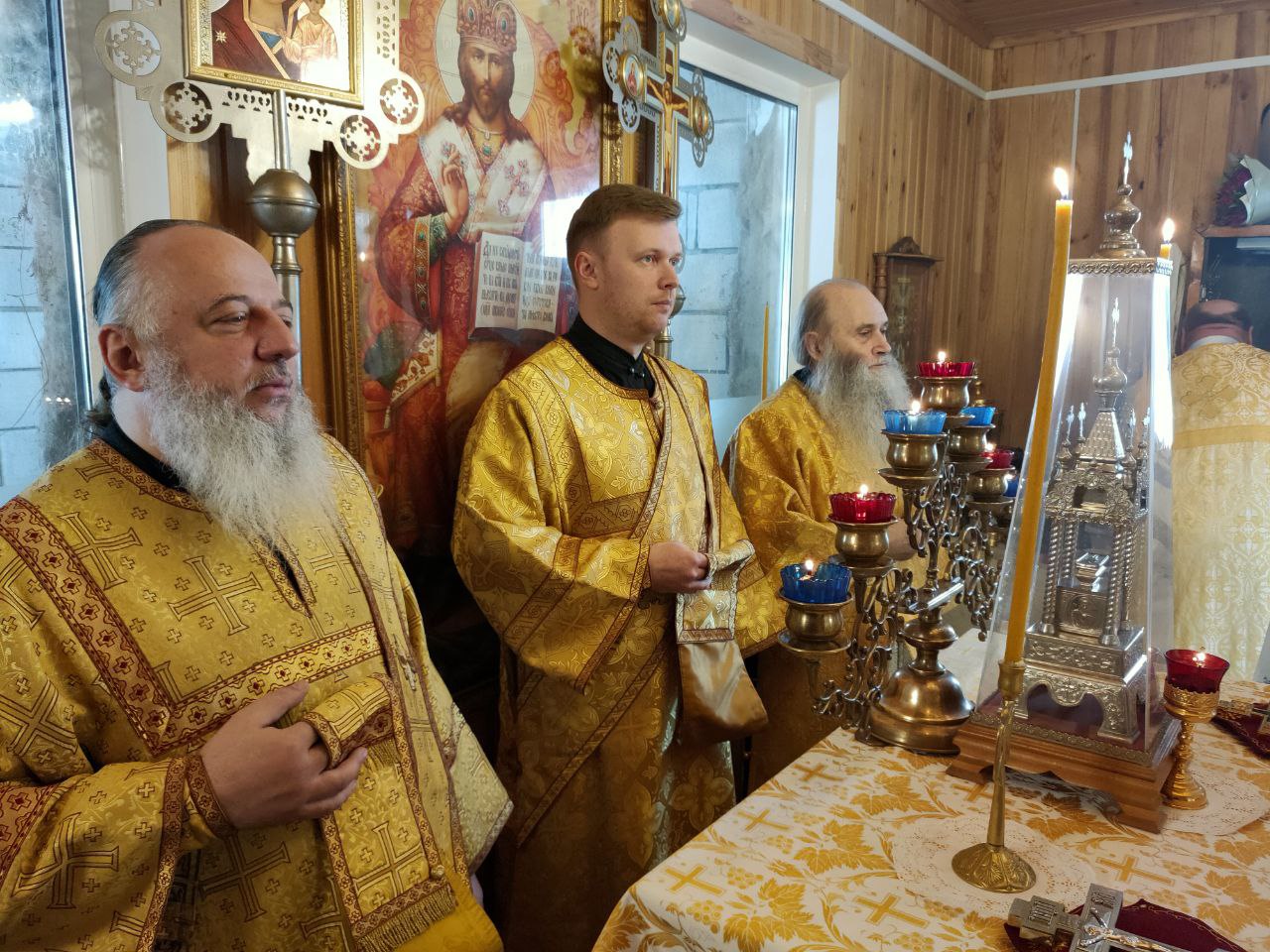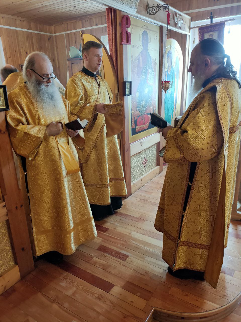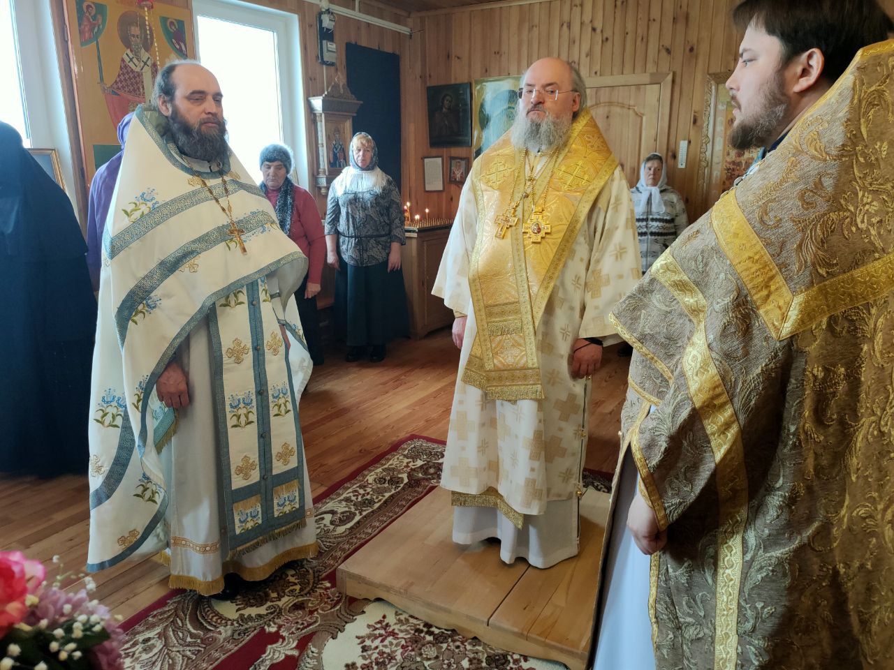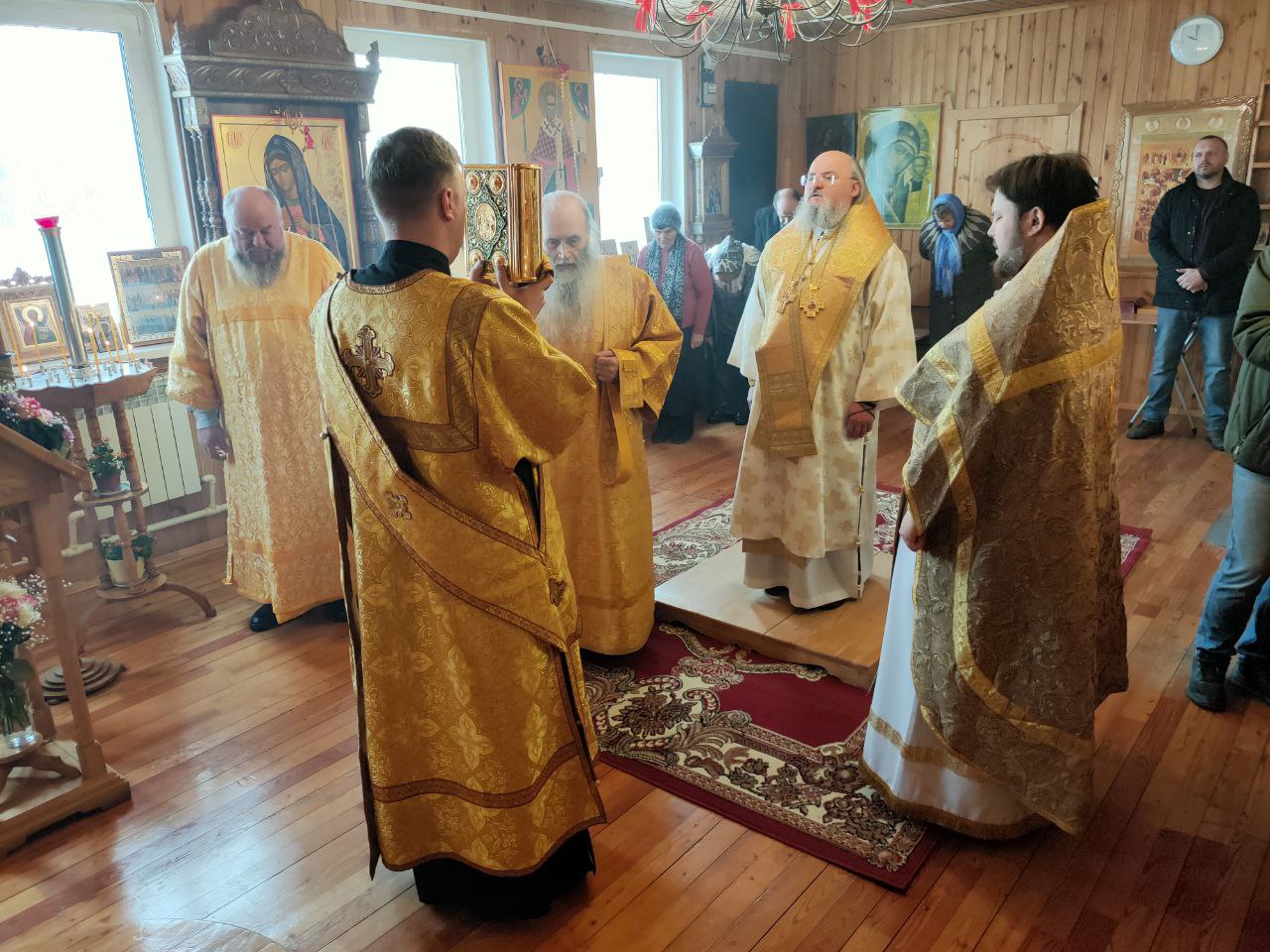 Преосвященному владыке сослужили: протоиерей Дмитрий Сахаров – настоятель прихода, протоиерей Антоний Хатунцев, диакон Евгений Ковригин, иеродиакон Виталий (Павленко) и диакон Вадим Ваньков.
