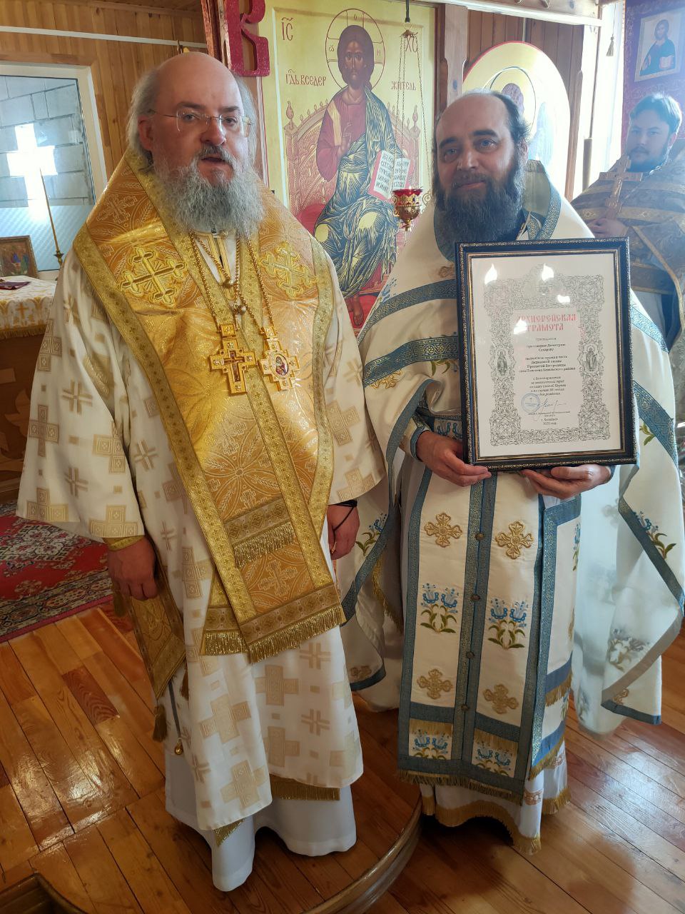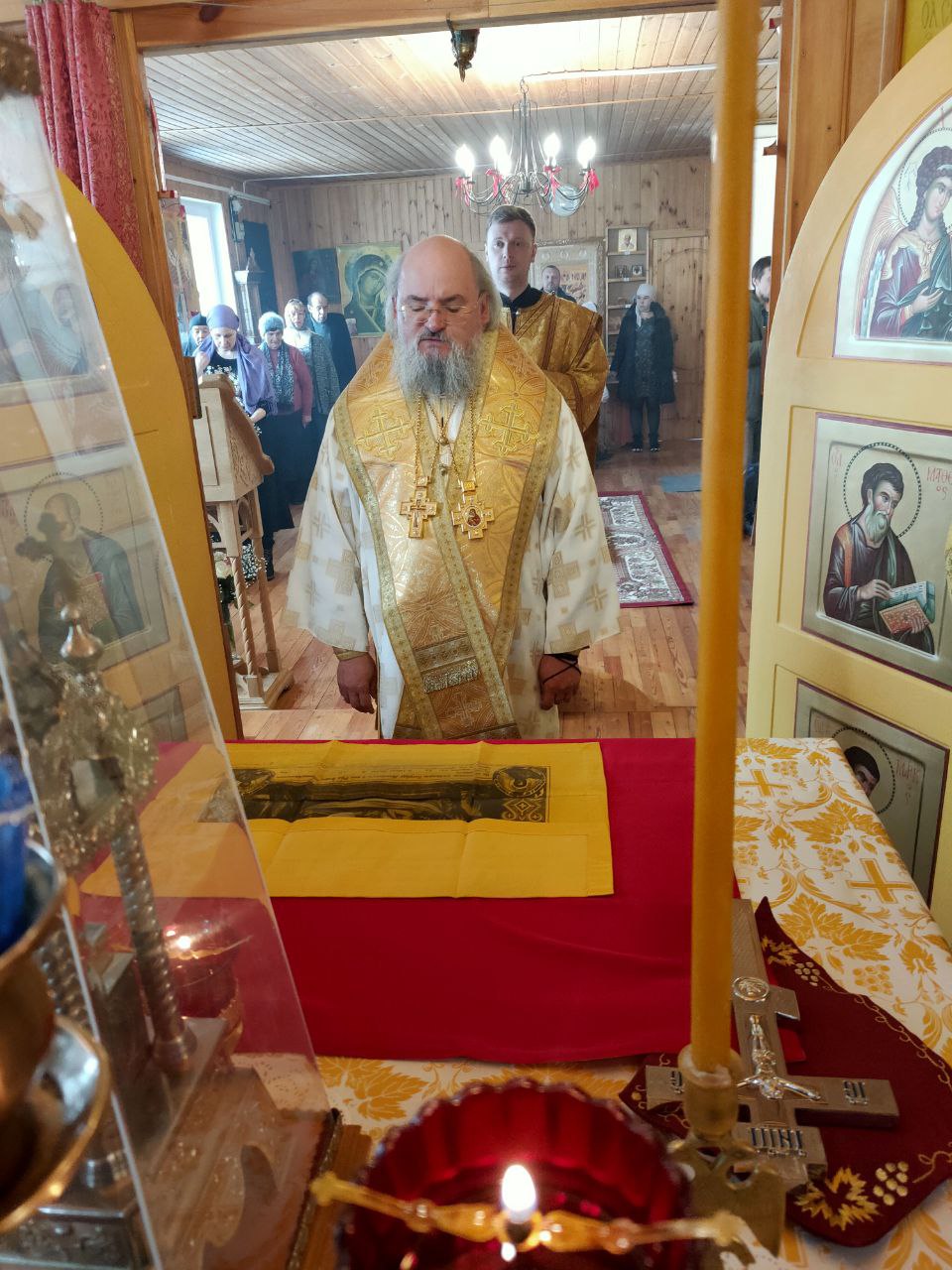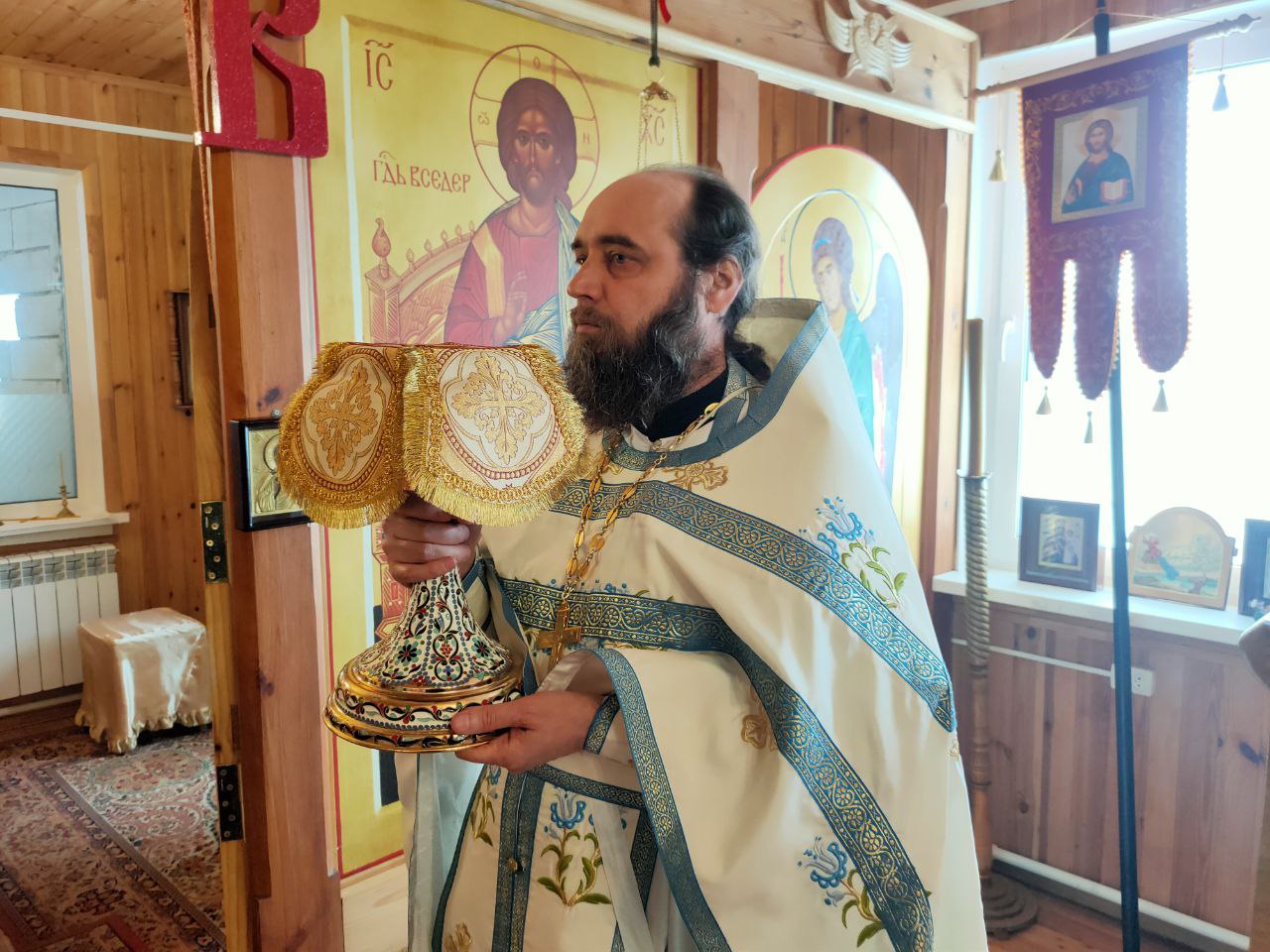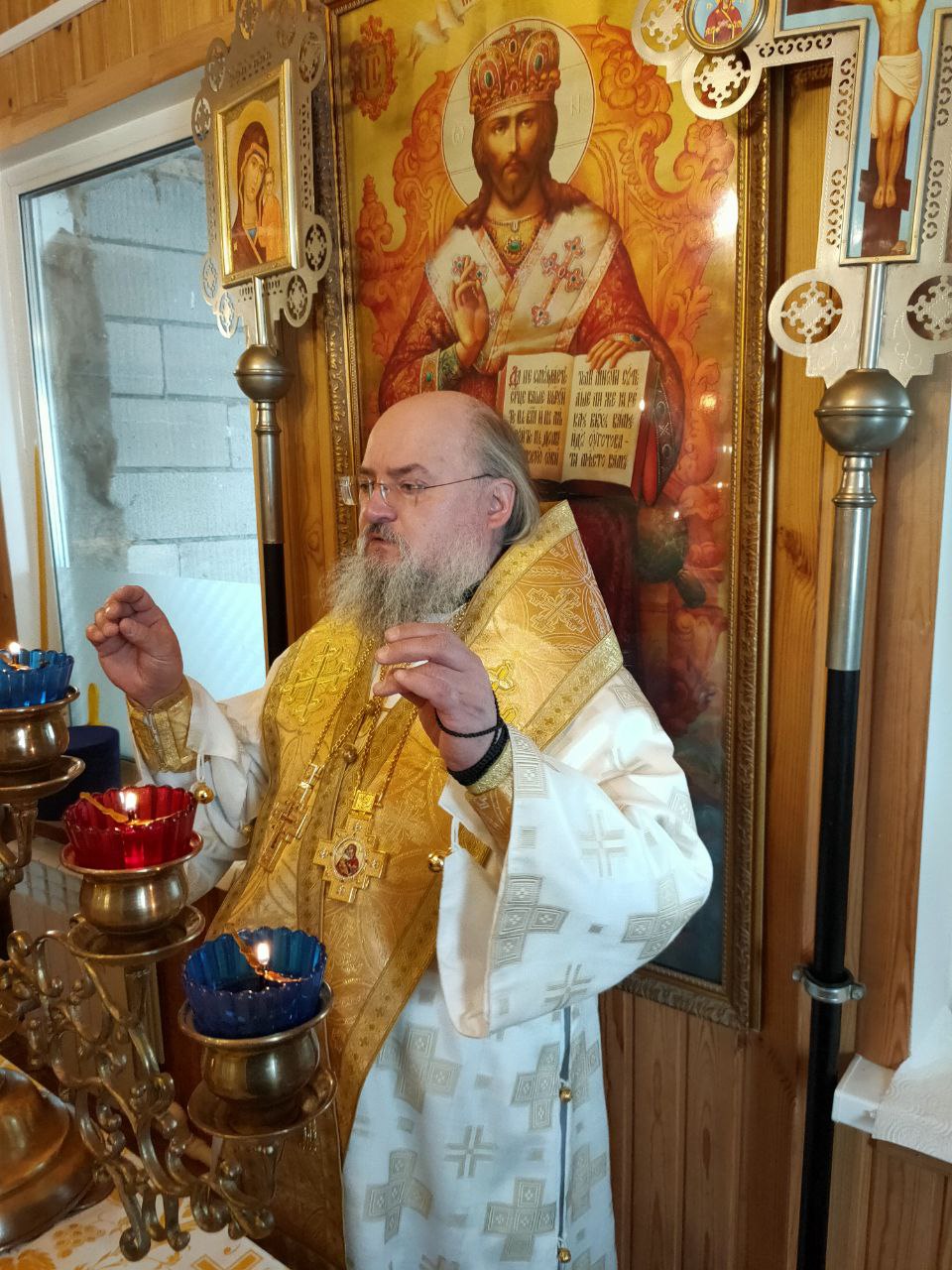 Преосвященному владыке сослужили: протоиерей Дмитрий Сахаров – настоятель прихода, протоиерей Антоний Хатунцев, диакон Евгений Ковригин, иеродиакон Виталий (Павленко) и диакон Вадим Ваньков.