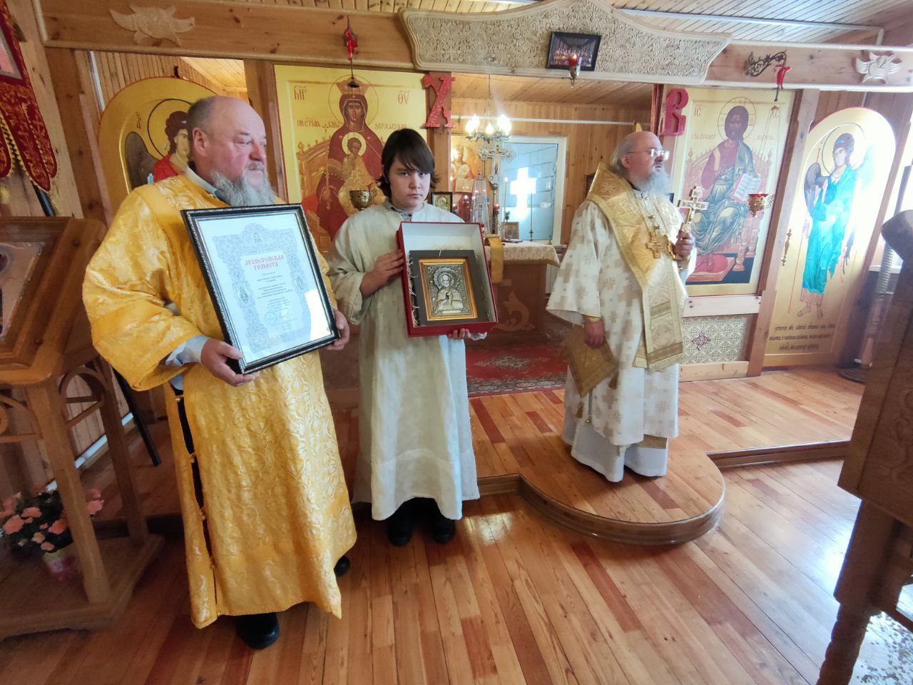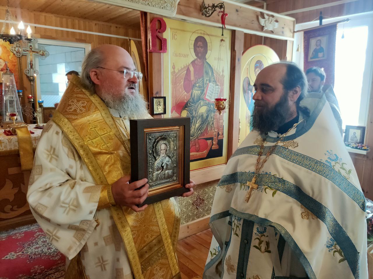 Архипастырь поздравил прихожан с престольным торжеством, а настоятеля храма протоиерея Дмитрия Сахарова с прошедшим юбилеем – пятидесятилетием со дня рождения и вручил ему благодарственную Архиерейскую грамоту, а также преподнес икону святителя Николая с пожеланием здоровья, душевных и телесных сил на многие годы служения Церкви Христовой.