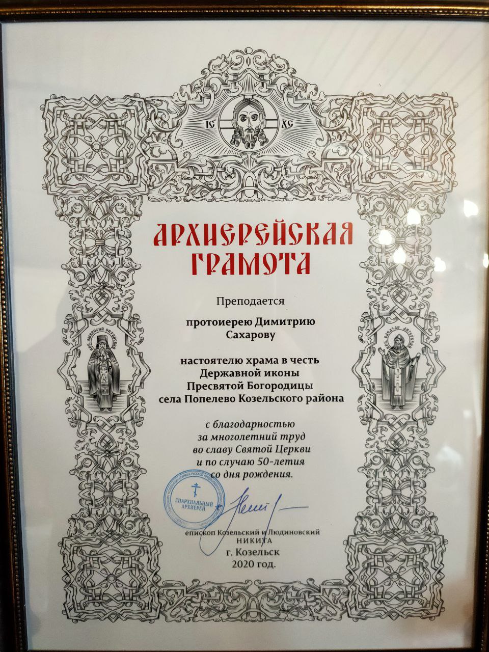 Епископ Козельский и Людиновский Никита совершил Божественную литургию в храме Державной иконы Божией Матери села Попелево Козельского района.