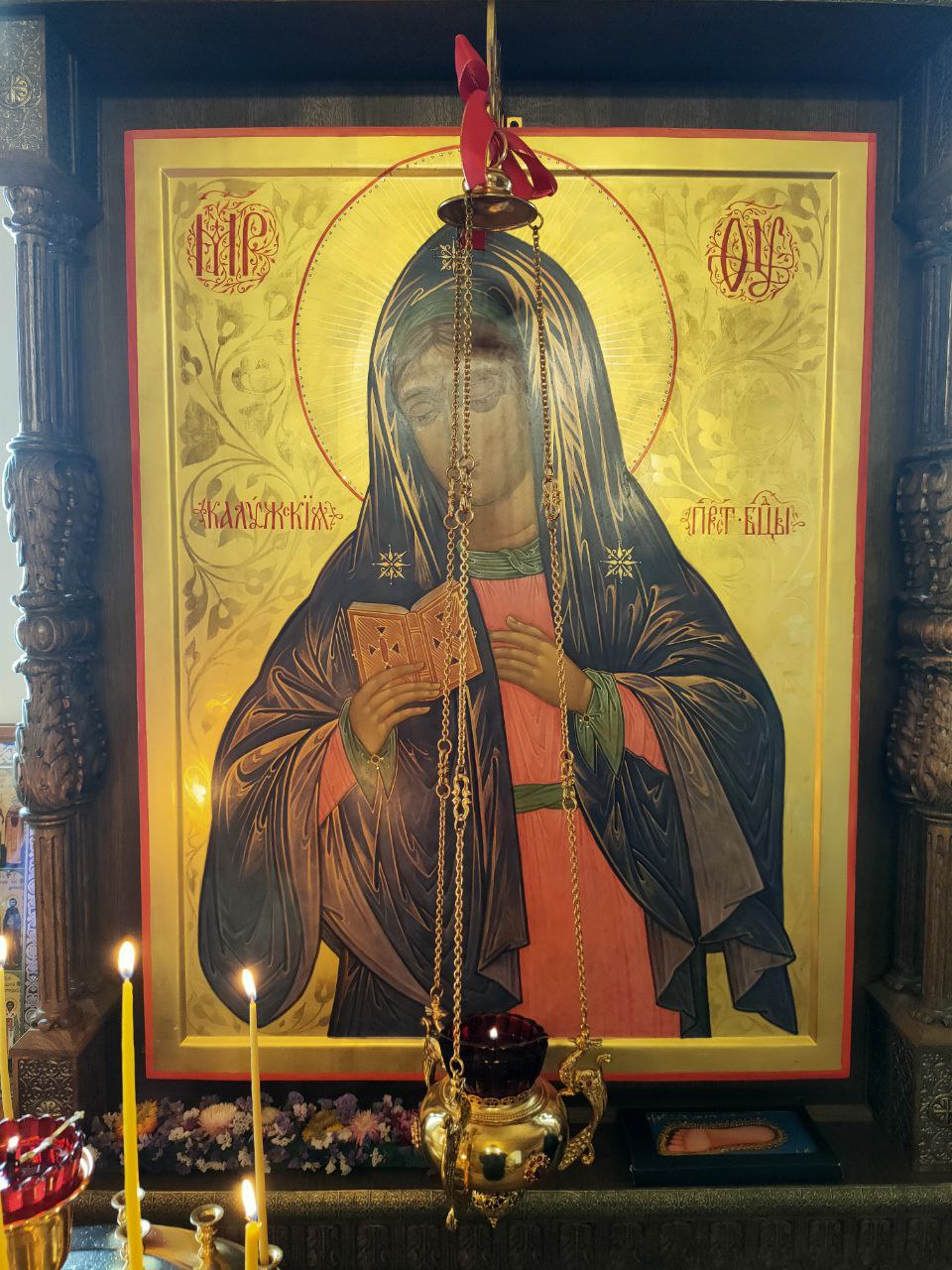 По отпусте литургии священнослужители, в центре храма, пред Державным образом Божией Матери совершили славление праздника Пресвятой Богородицы, а затем, вознеся молитву Царице Небесной, владыка обратился к богомольцам с проповедью.