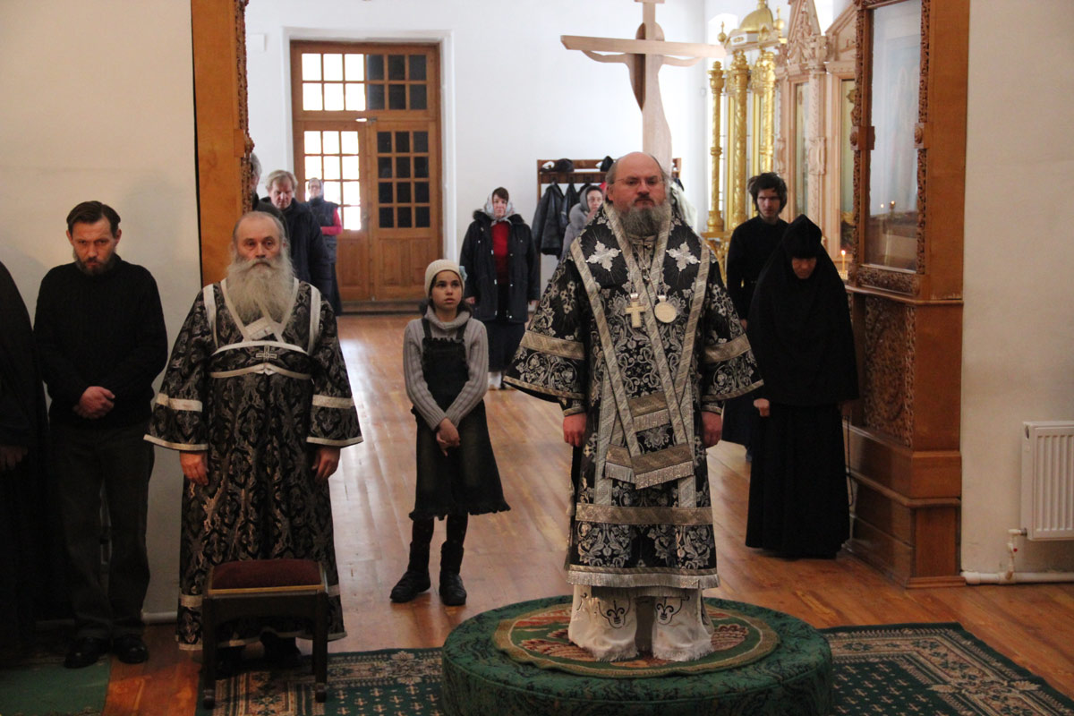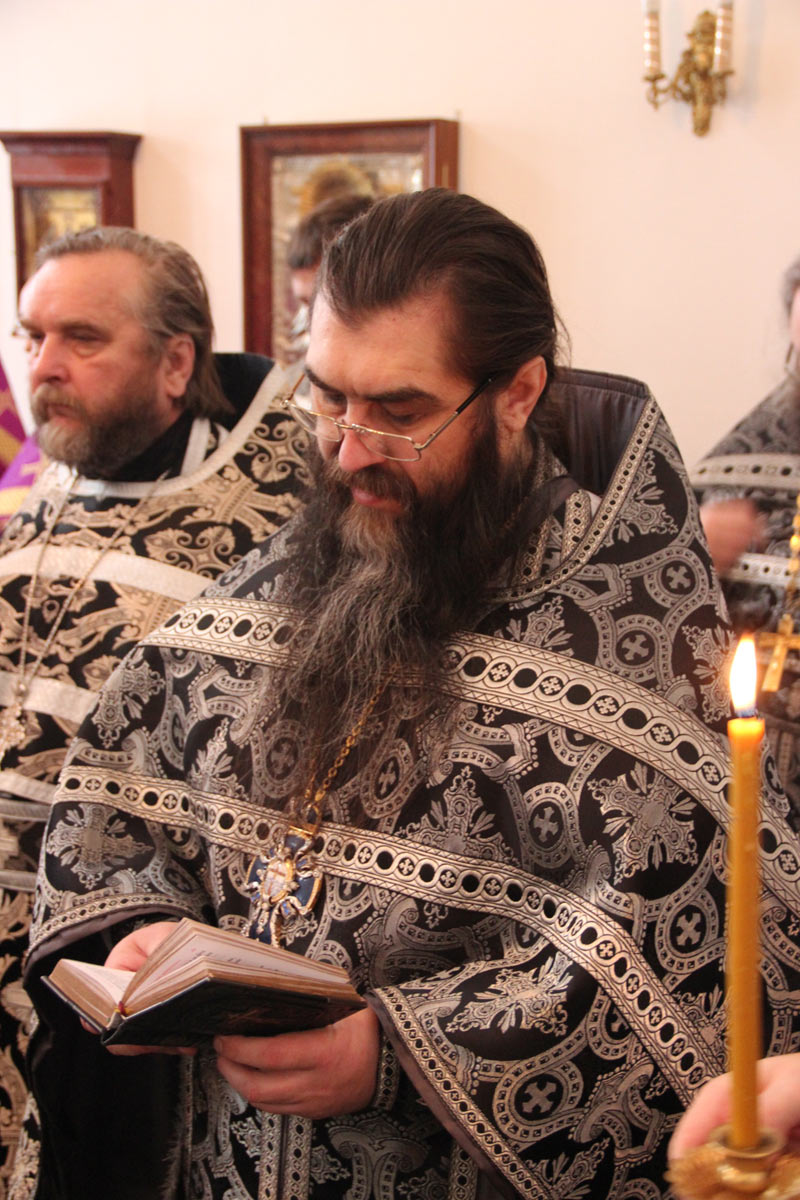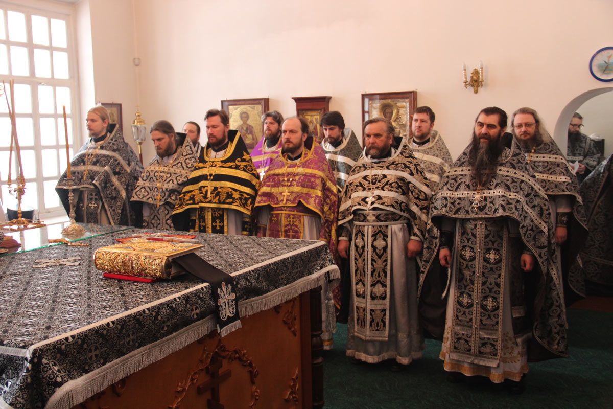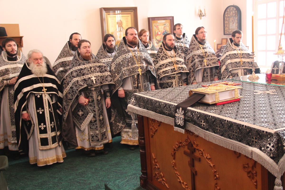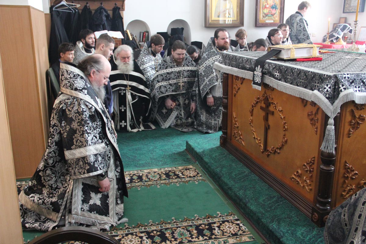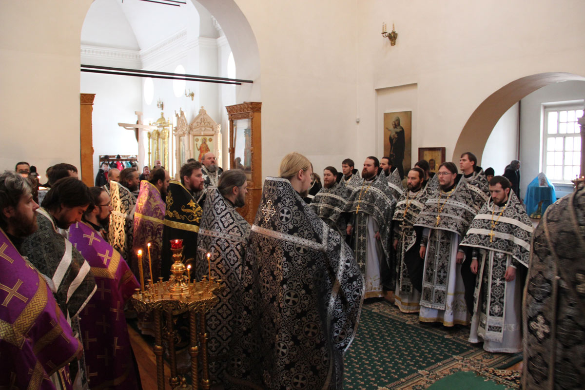 Архипастырю сослужили: духовник Козельской епархии митрофорный протоиерей Валерий Клинов, настоятель монастыря Спаса Нерукотворного Пустынь игумен Михаил (Семенов), благочинный первого округа протоиерей Владимир Бахаев, благочинный четвертого округа протоиерей Александр Карпов и все клирики Козельского и Хвастовичского благочиннических округов. До начала богослужения были прочитаны, полагающиеся по уставу пред таинством Покаяния, молитвословия, а затем духовник епархии протоиерей Валерий Клинов принял исповедь у священнослужителей.