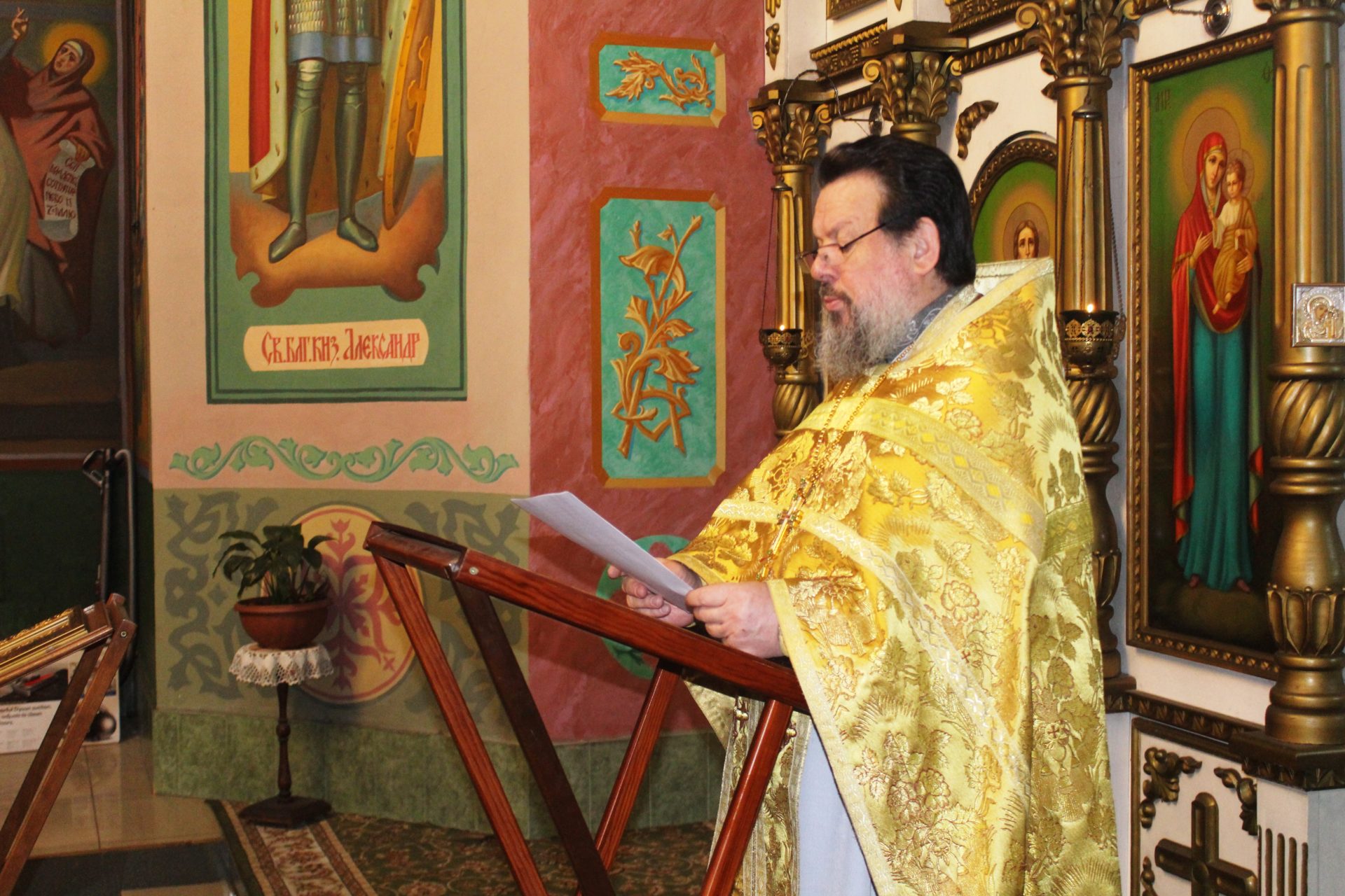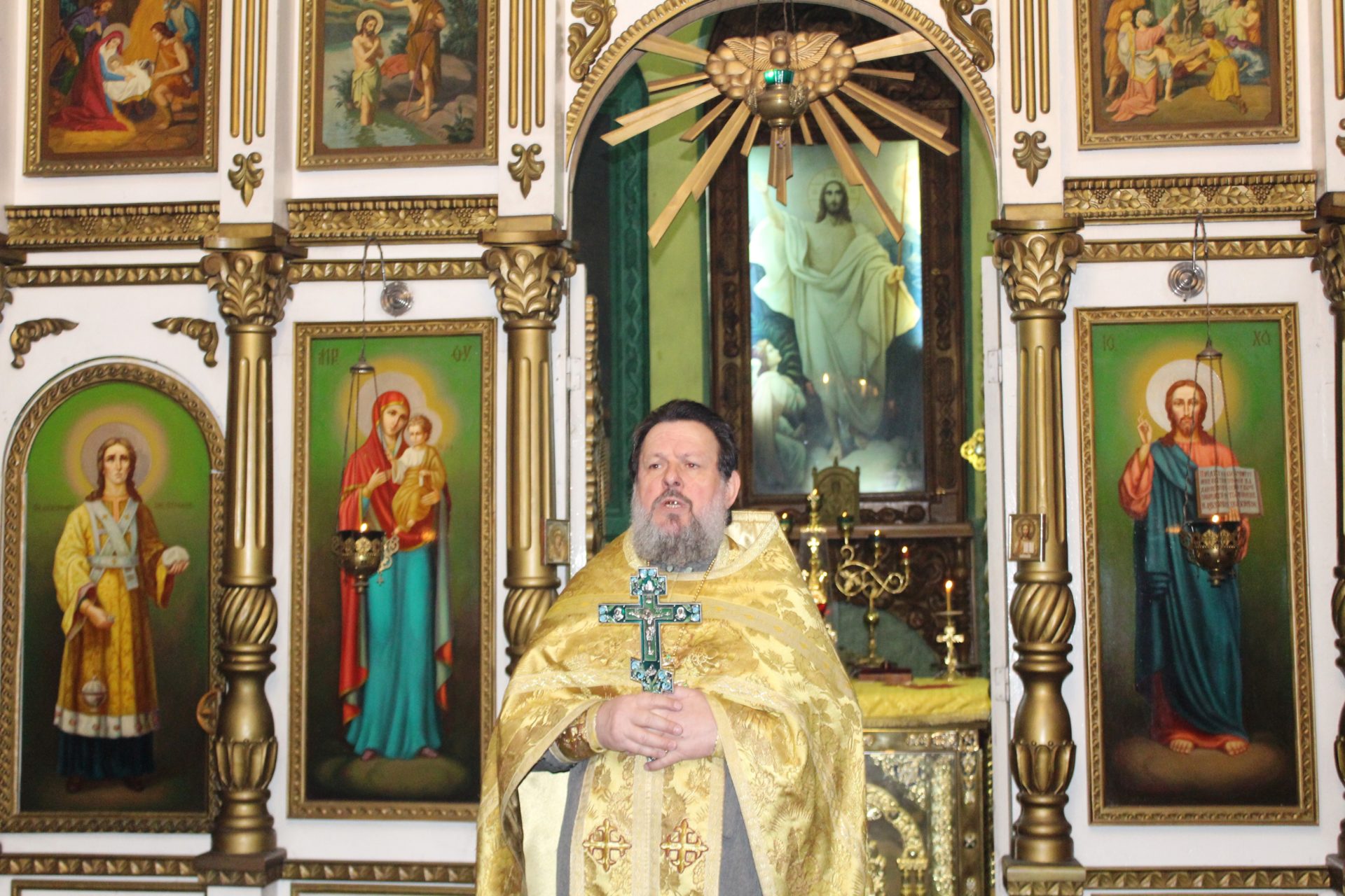 По окончании литургии отец Василий обратился ко всем прихожанам с проповедью .»Мы собираемся в прощеный день в святые храмы для того, чтобы испросить друг у друга прощения в наших согрешениях и нанесенных друг другу обидах. В Святом Евангелии сказано о том, как надо поститься. «Когда поститесь, не будьте унылы, как лицемеры, ибо они принимают на себя мрачные лица, чтобы показаться людям постящимися. Истинно говорю вам, – говорит Господь, – что они уже получают награду свою. А ты, когда постишься, помажь голову твою и умой лицо твое, чтобы явиться постящимся не пред людьми, но пред Отцом твоим, Который втайне. И Отец твой, видящий тайное, воздаст тебе явно». Вот такие слова есть в Святом Евангелии о том, как надо поститься. Сказано также в Святом Евангелии о молитве, о том, как надо молиться. «Когда молишься, войди в комнату твою и, затворив дверь твою, помолись Отцу твоему, Который втайне. И Отец твой, видящий тайное, воздаст тебе явно». Вот так и в нынешний день, собравшись в святой храм, мы, дорогие братья и сестры, от всего сердца, искренне простим друг другу прегрешения, забудем всякие обиды, забудем всякие поношения, которые часто бывают у нас в жизни.»