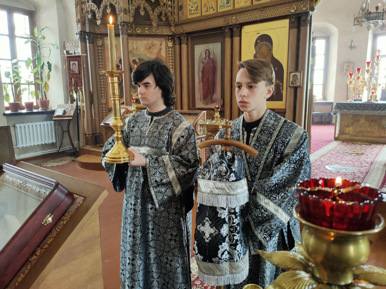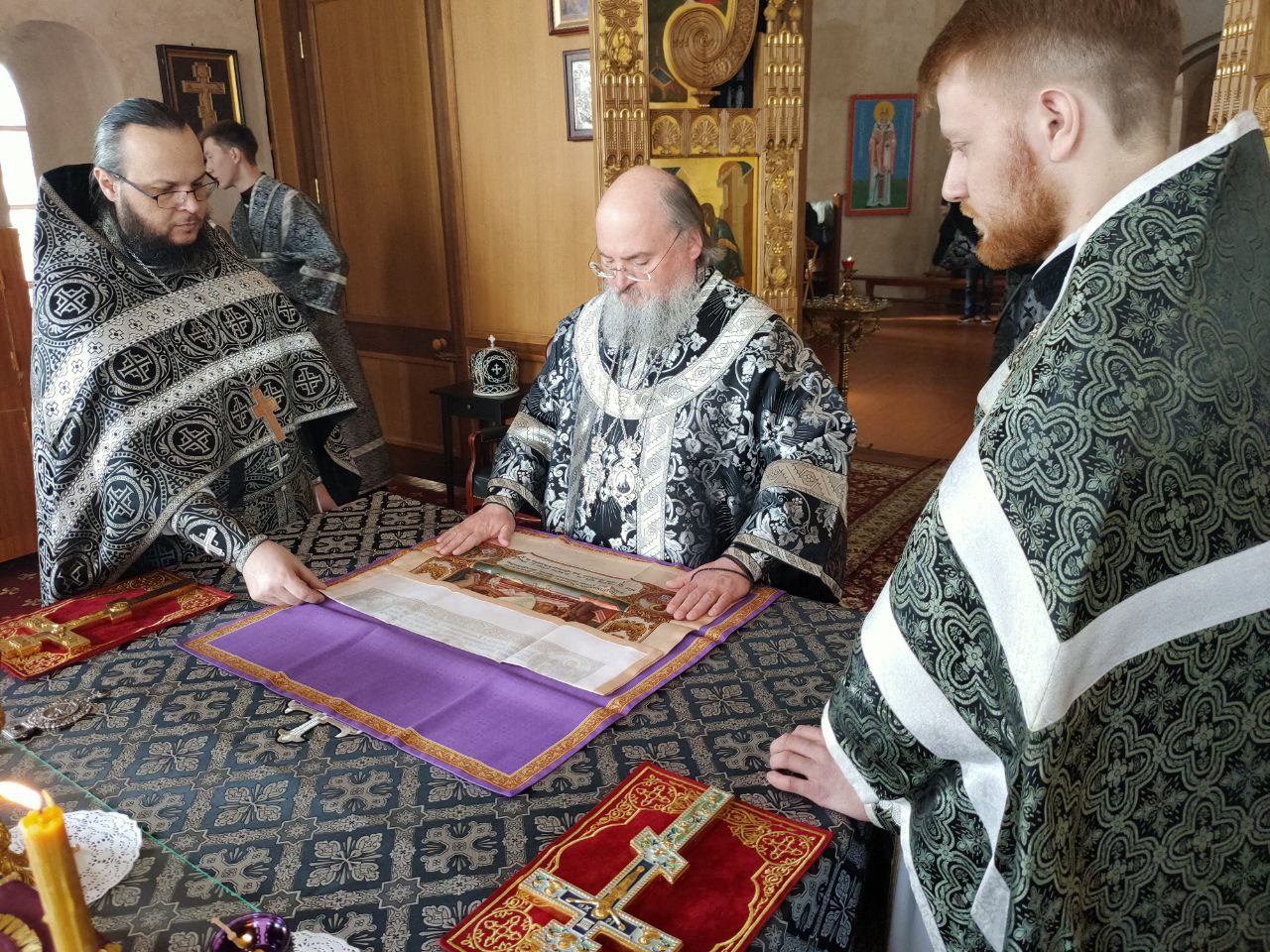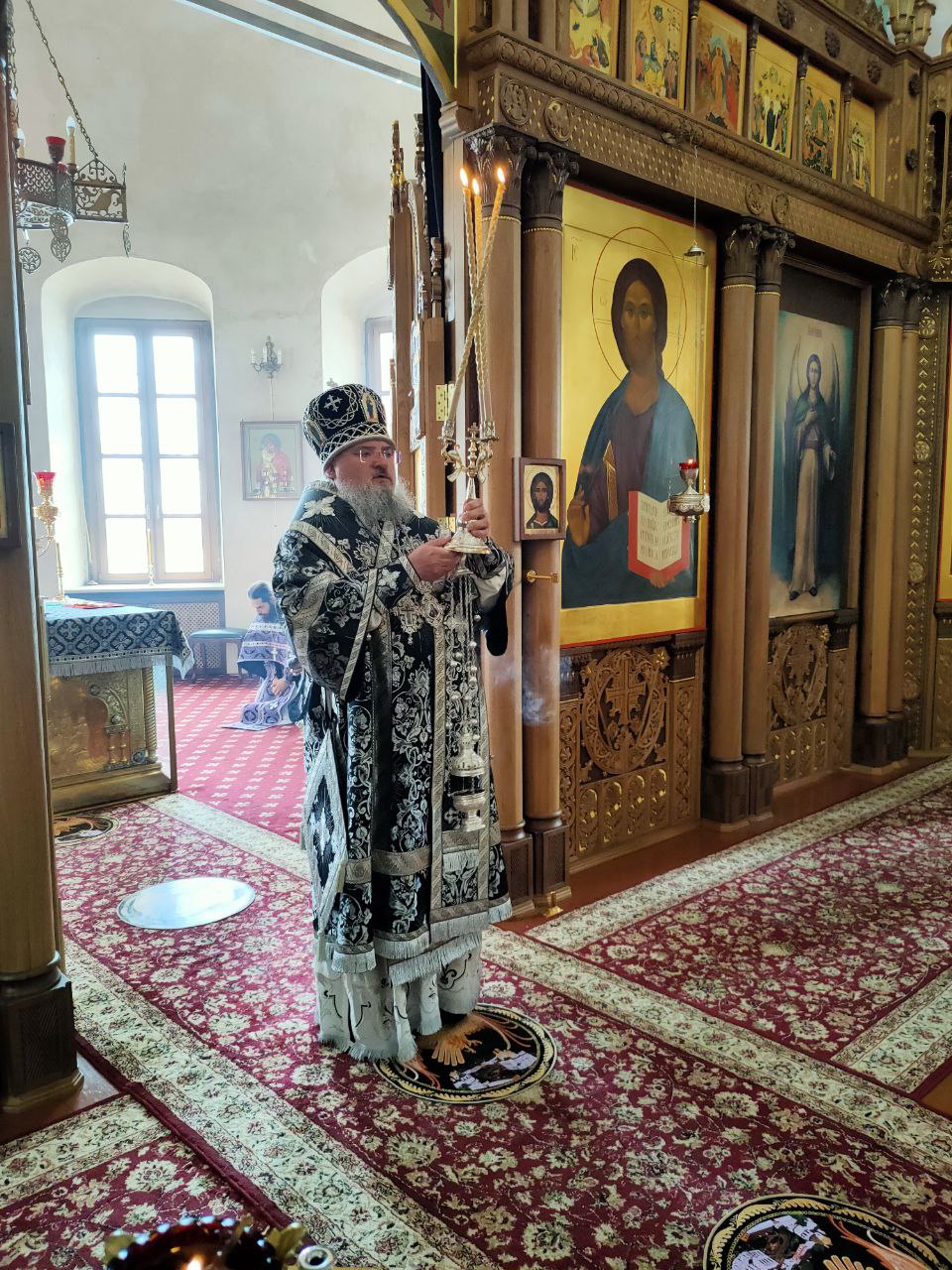 Архипастырю сослужили: настоятель собора иеромонах Паисий (Курмаз), иерей Елисей Тимофеев, иерей Максим Изопов, иерей Филипп Лисенков, диакон Евгений Ковригин, диакон Дмитрий Лутков и иеродиакон Виталий (Павленко).