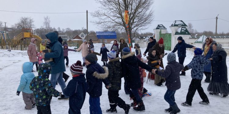 В Нижних Прысках воспитанники воскресной школы и Русской Классической Школы, занимающиеся при храме провели праздничные масленичные гуляния.