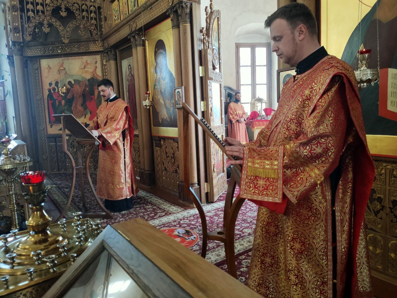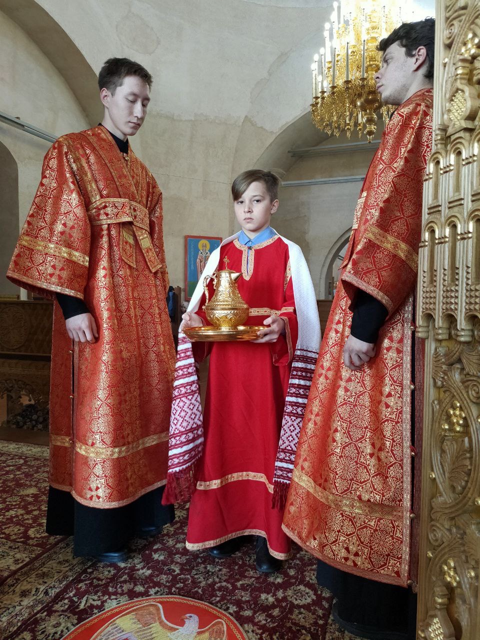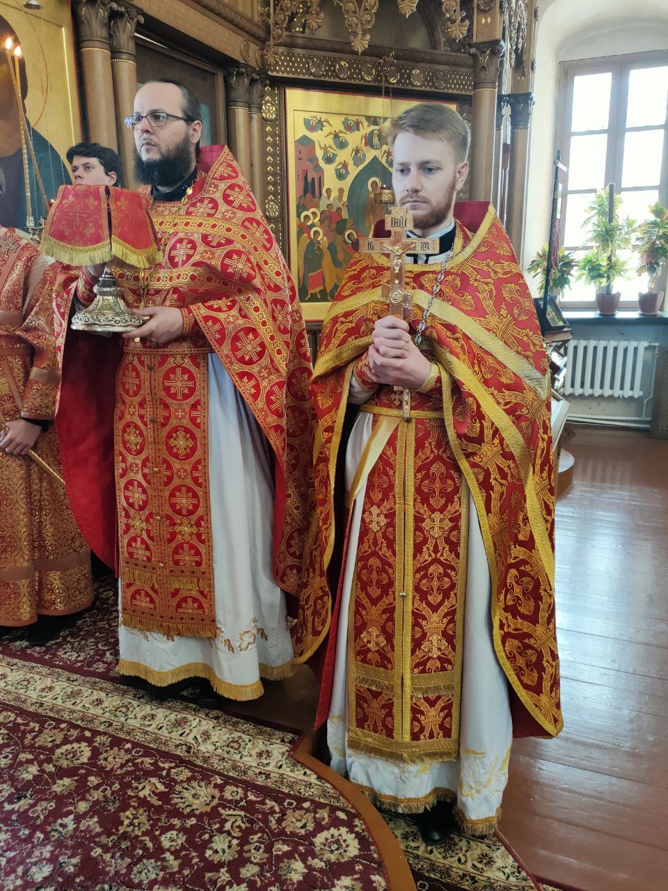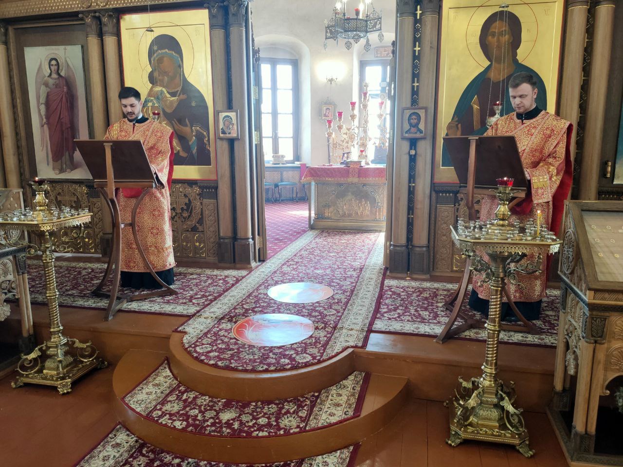 Его Преосвященству сослужили: протоиерей Антоний Хатунцев, иеромонах Паисий (Курмаз) – настоятель собора, иерей Елисей Тимофеев, иерей Филипп Лисенков, диакон Евгений Ковригин, диакон Евгений Васильев и иеродиакон Виталий (Павленко).
