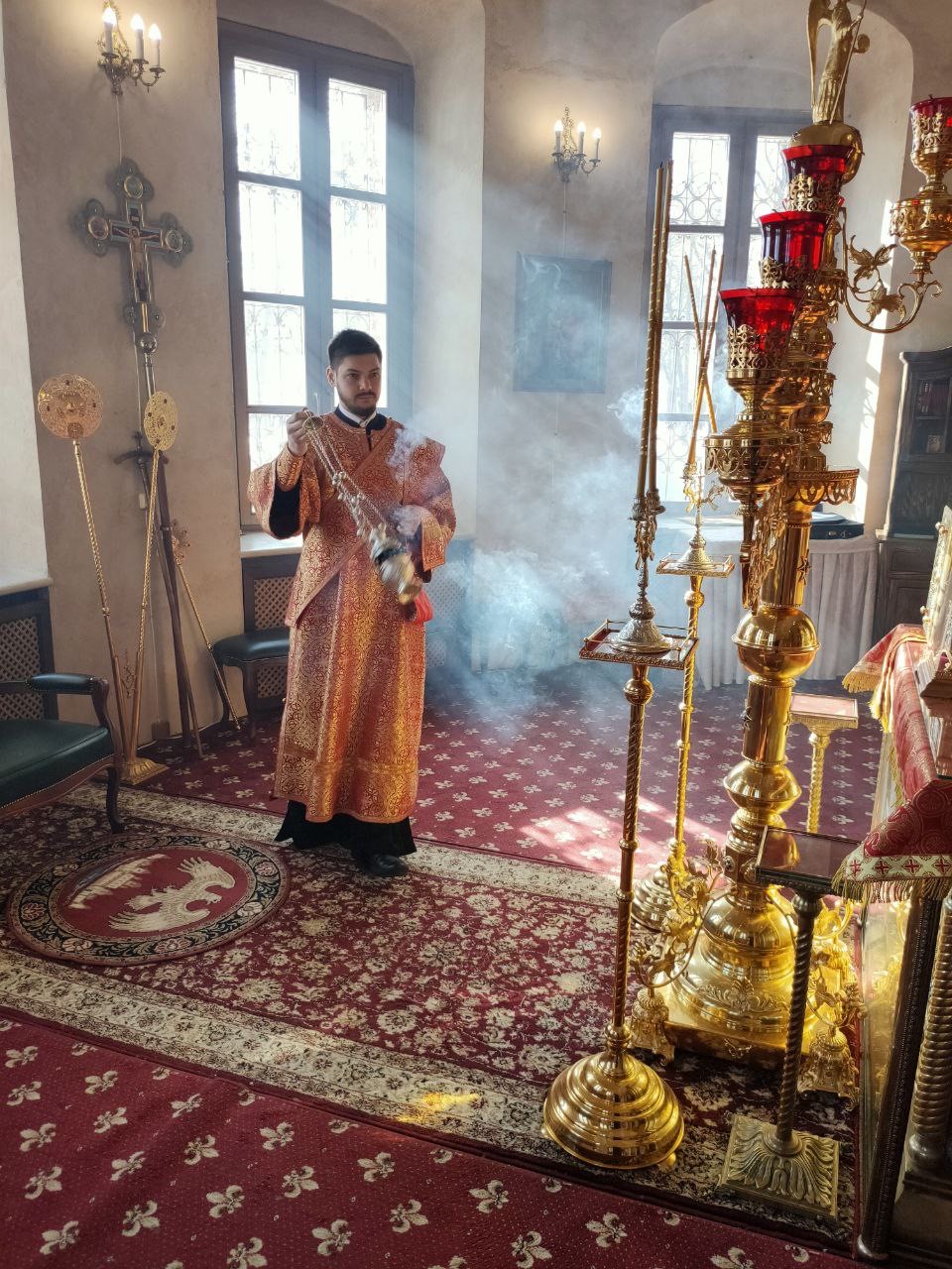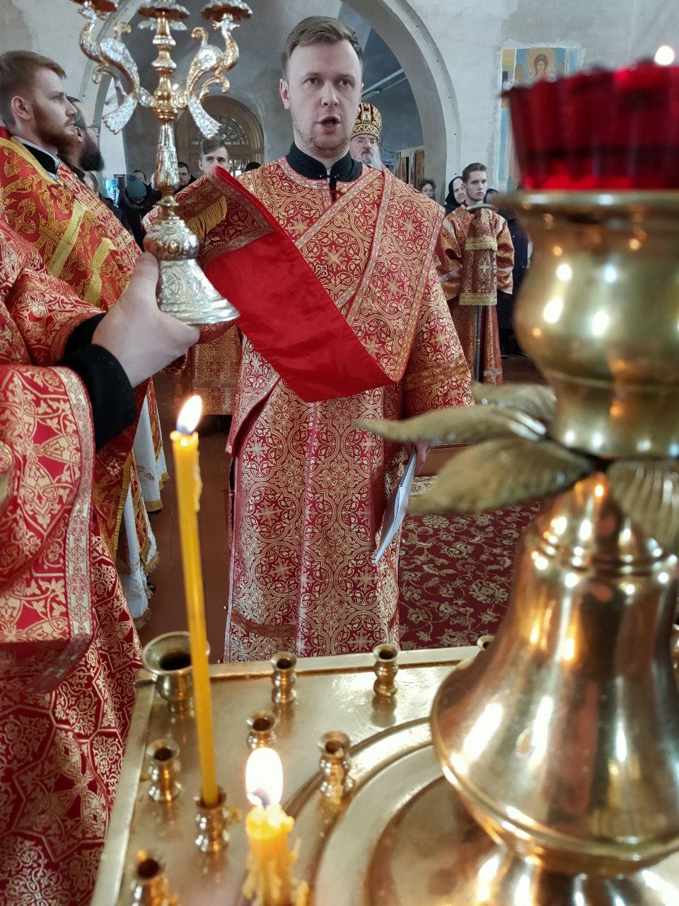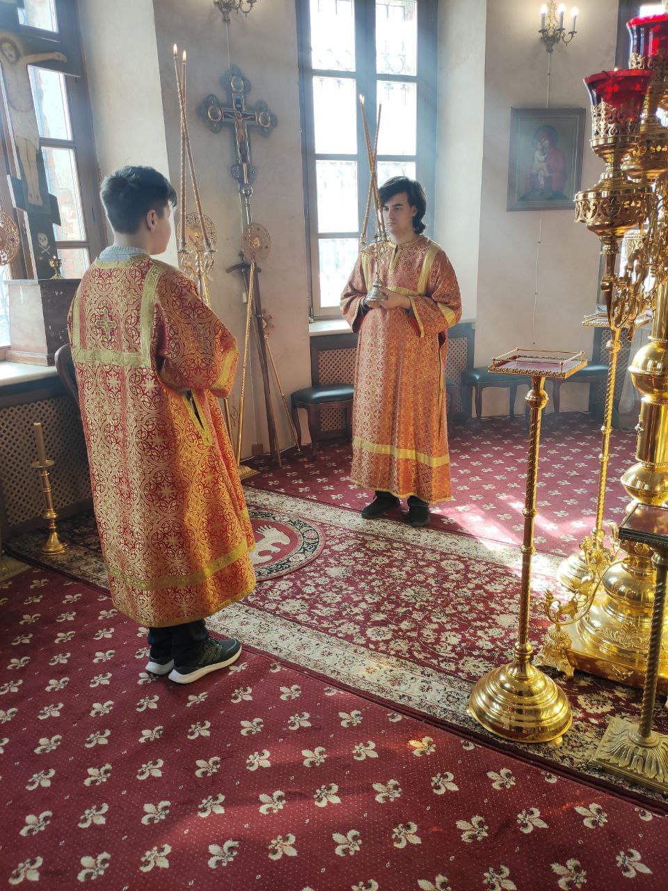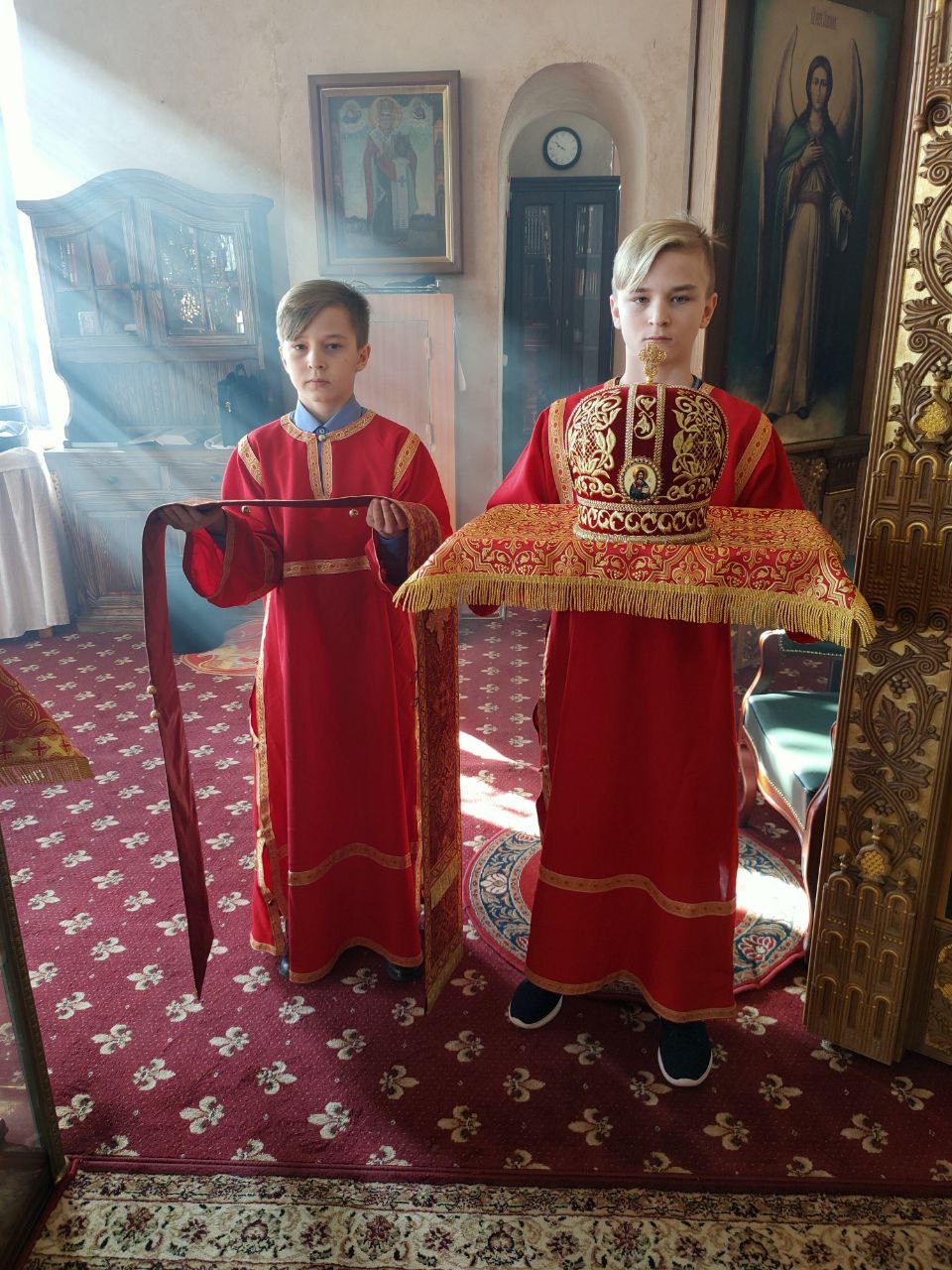 Его Преосвященству сослужили: протоиерей Антоний Хатунцев, иеромонах Паисий (Курмаз) – настоятель собора, иерей Елисей Тимофеев, иерей Филипп Лисенков, диакон Евгений Ковригин, диакон Евгений Васильев и иеродиакон Виталий (Павленко).