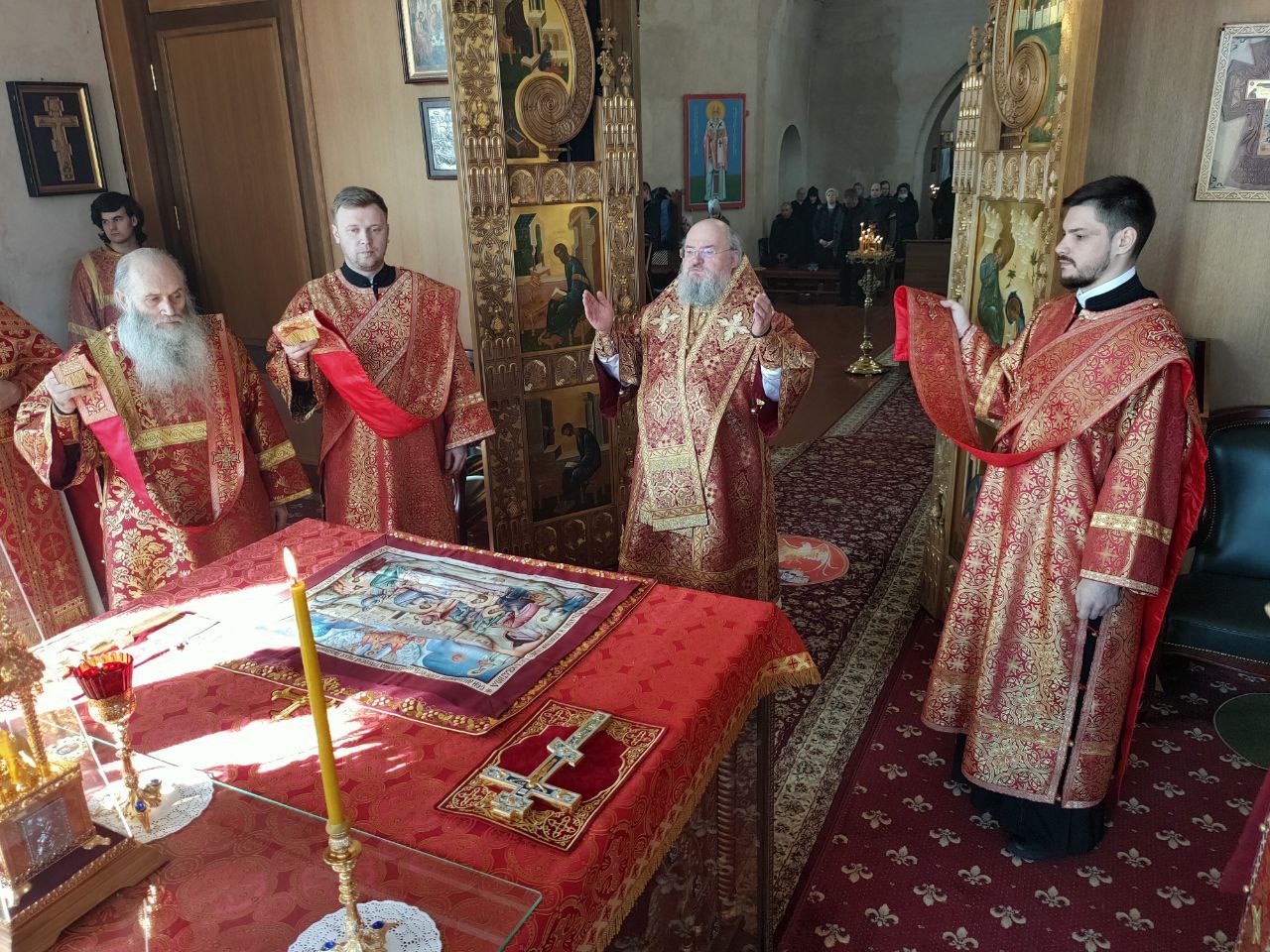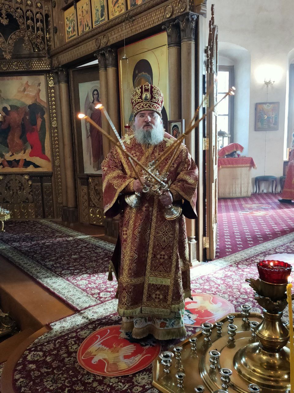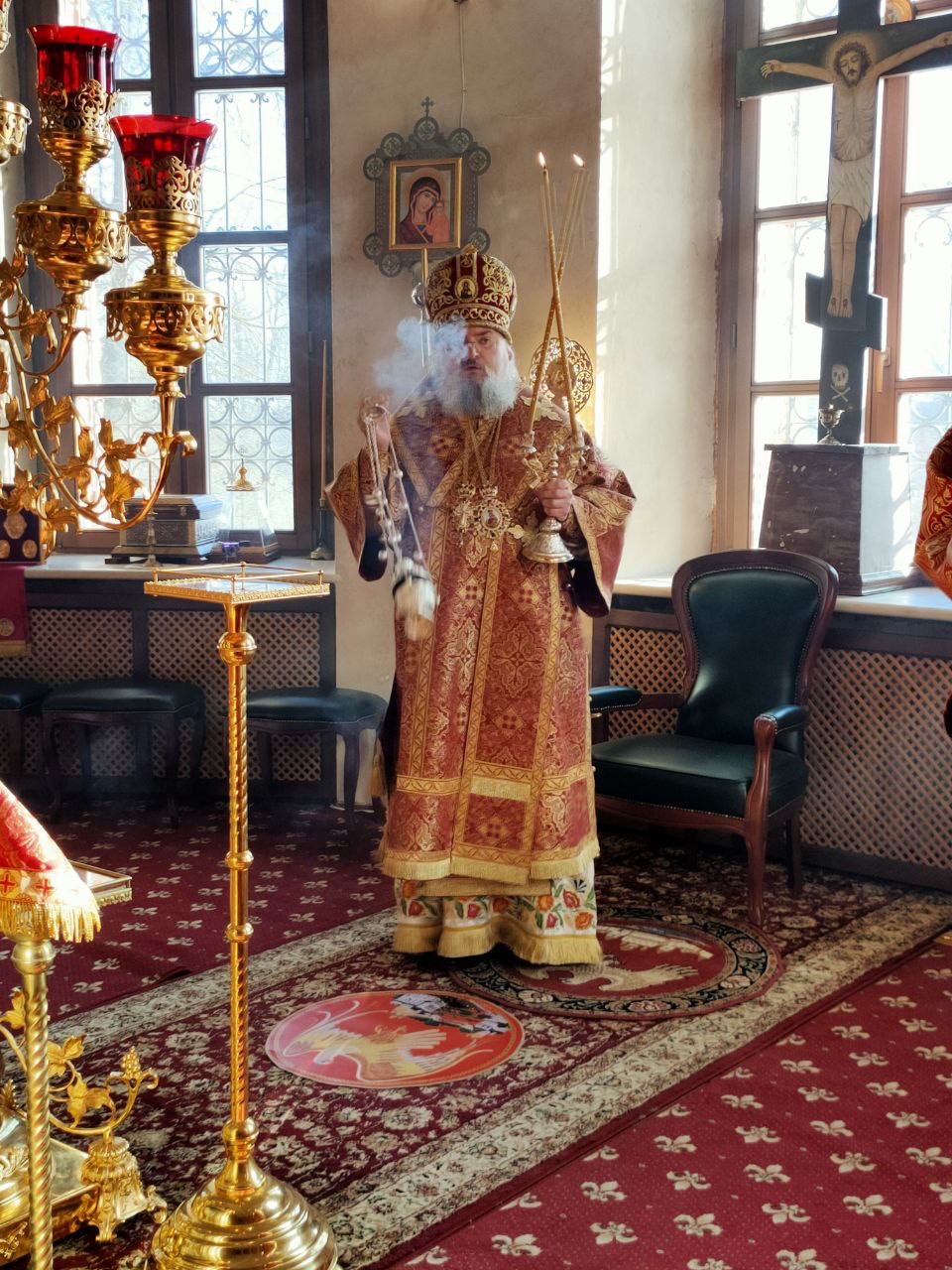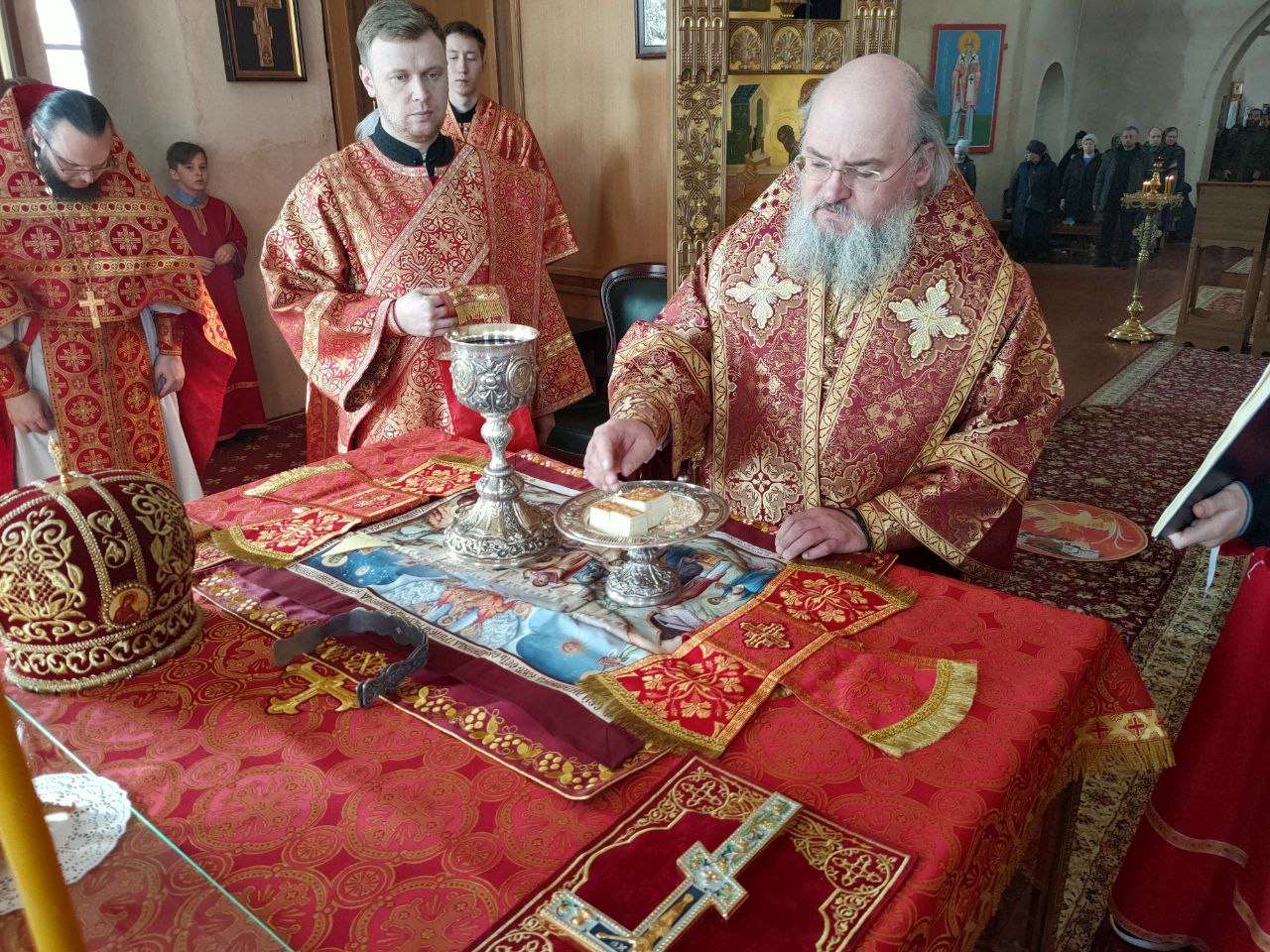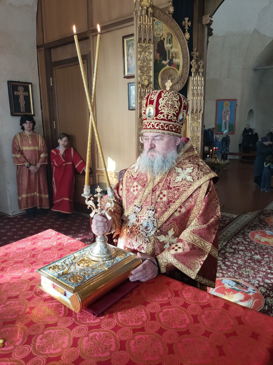 По отпусте Литургии владыка с сослужащим духовенством совершили чин Торжества Православия. В завершении богослужения архипастырь произнес проповедь.