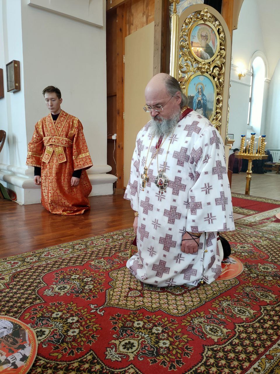 Епископ Козельский и Людиновский Никита совершил Божественную литургию Преждеосвященных Даров в Богоявленском храме микрорайона Мехзавод города Козельска. Нижний престол храма освящен в честь Севастийских мучеников.
