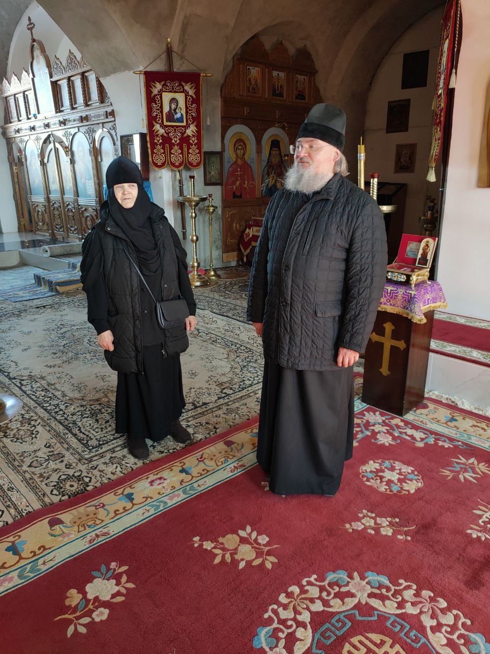 Владыку встречали старшая сестра женской монашеской общины возрождающейся обители монахиня Анастасия (Дремина) и священник общины иерей Ярослав Стрельников.
