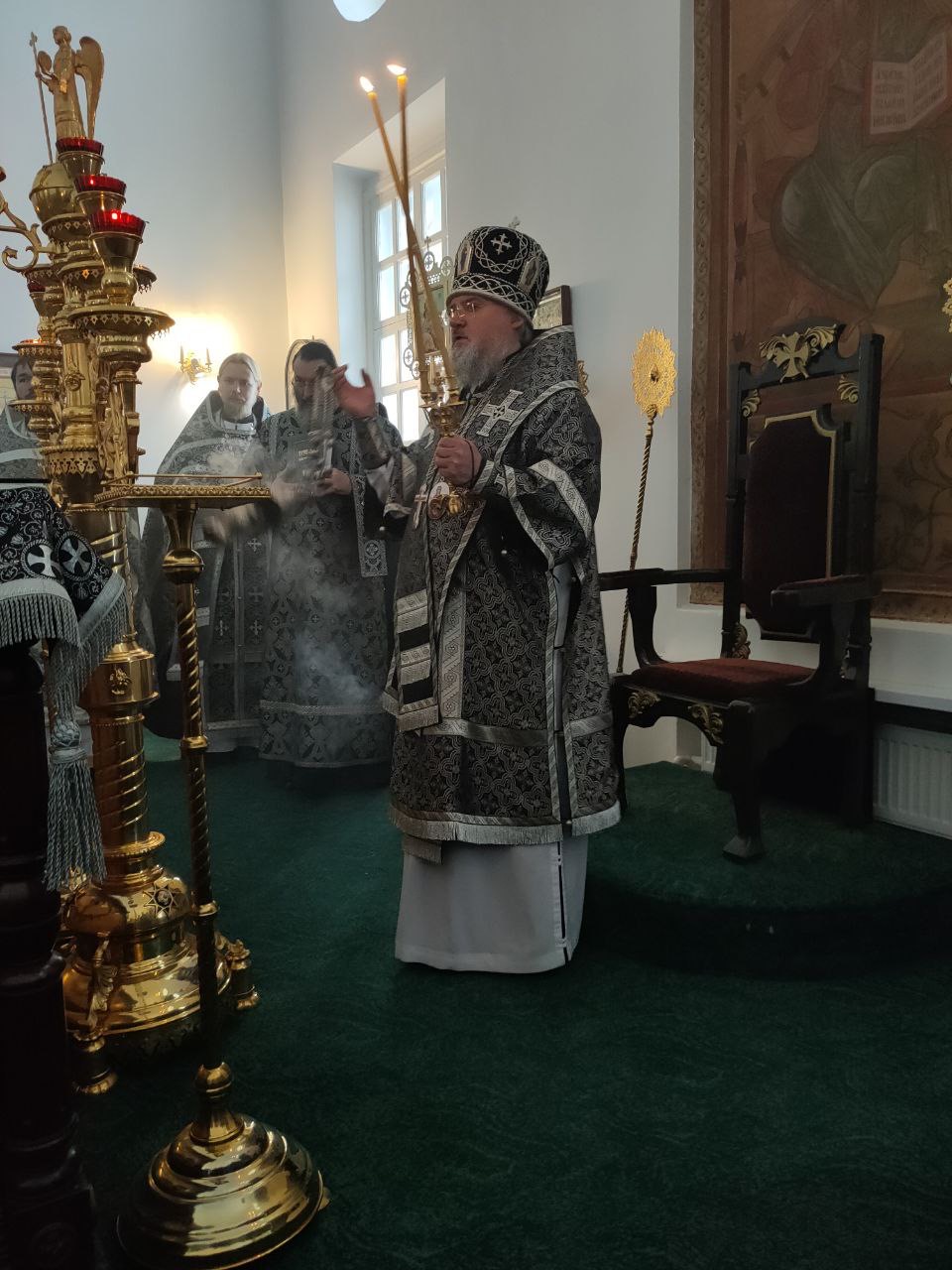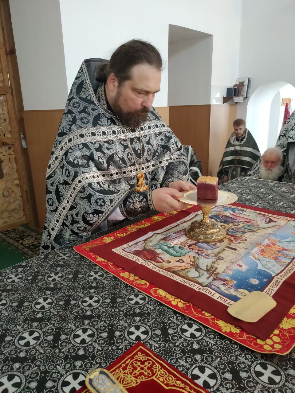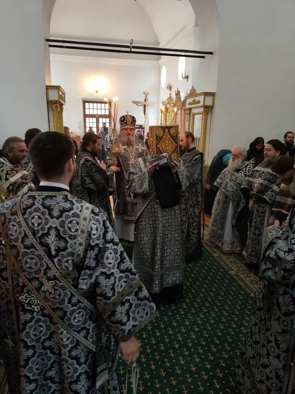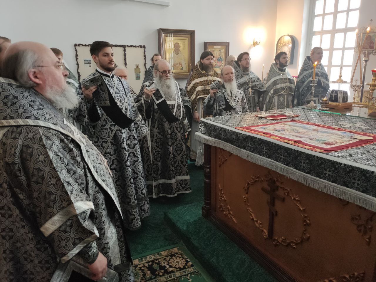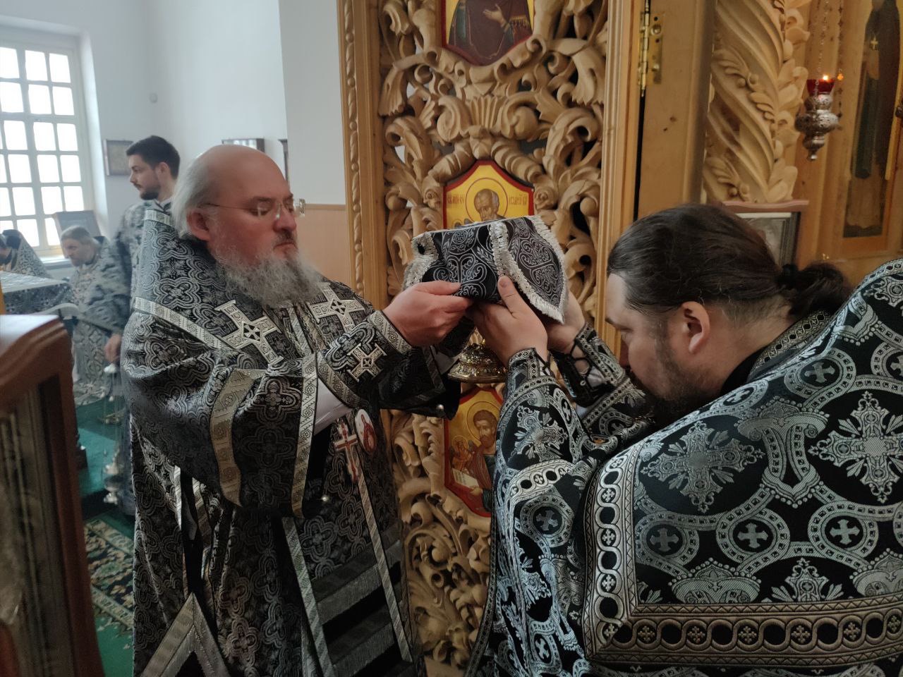 До начала богослужения состоялось традиционное великопостное говение духовенства. Духовник епархии иеромонах Тихон (Клинов) принял исповедь священнослужителей.