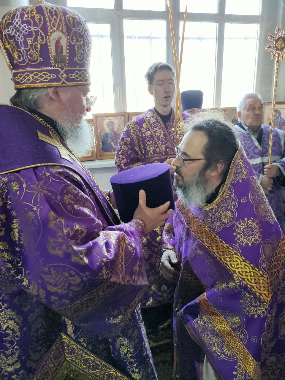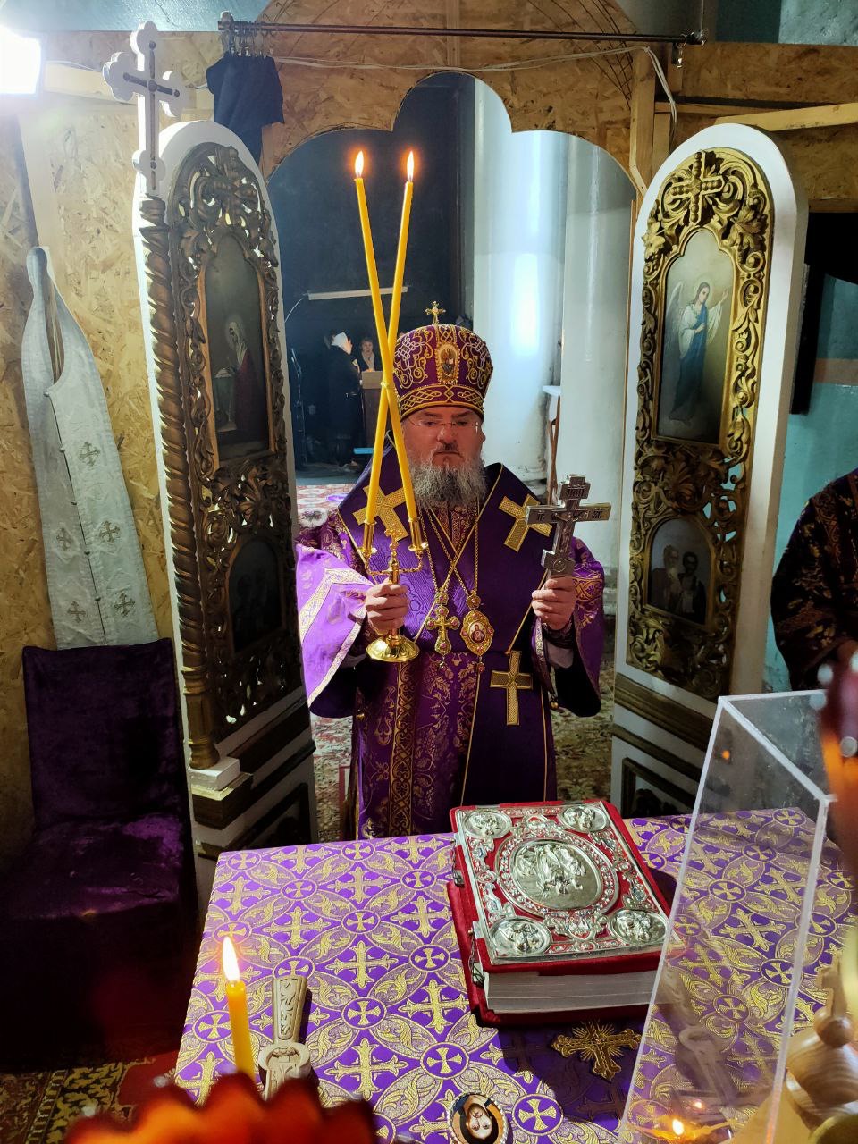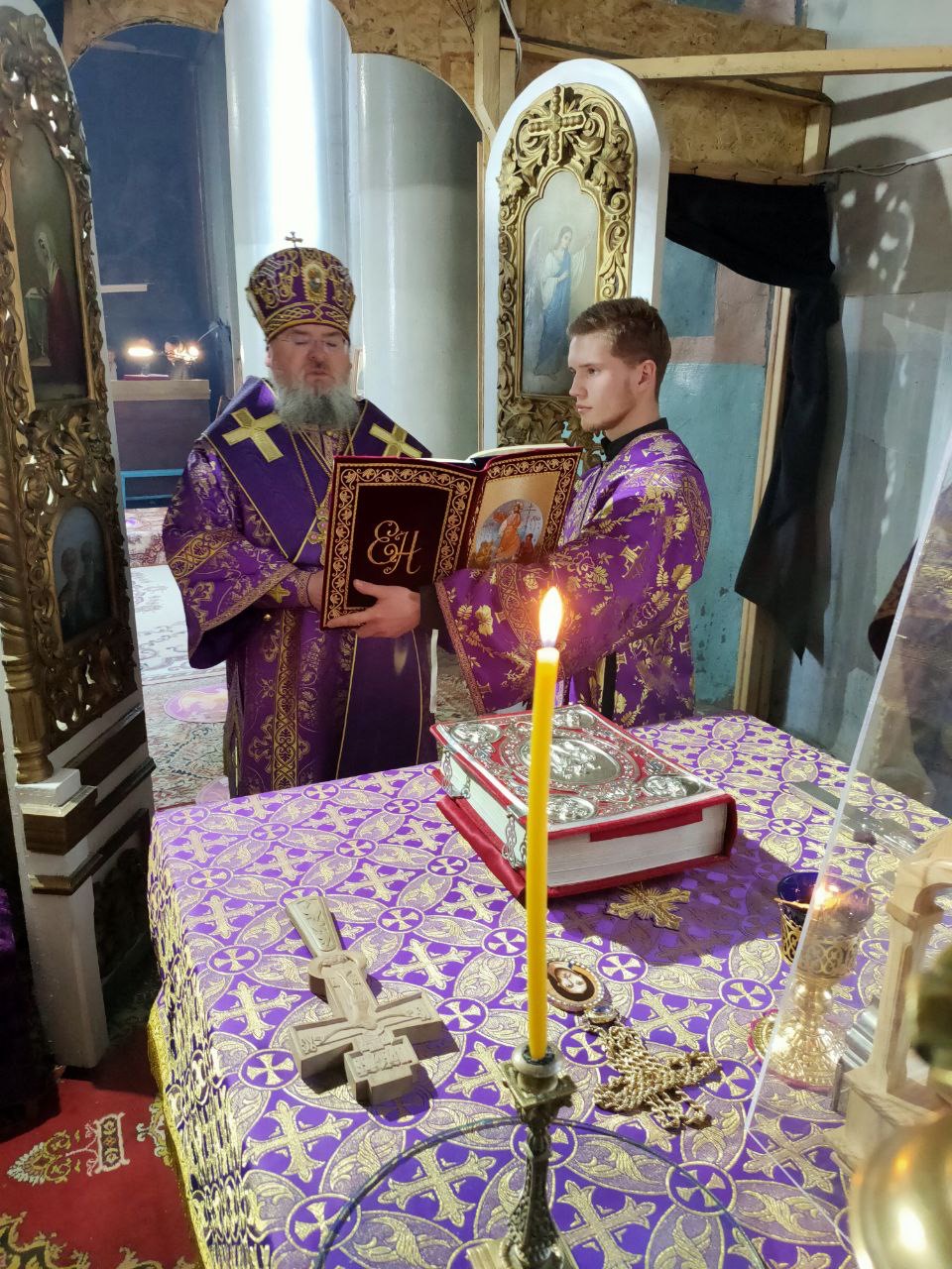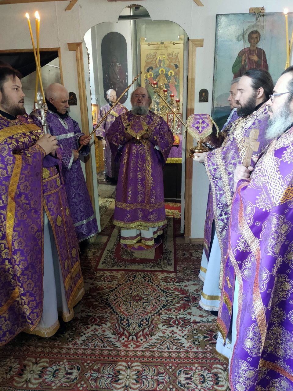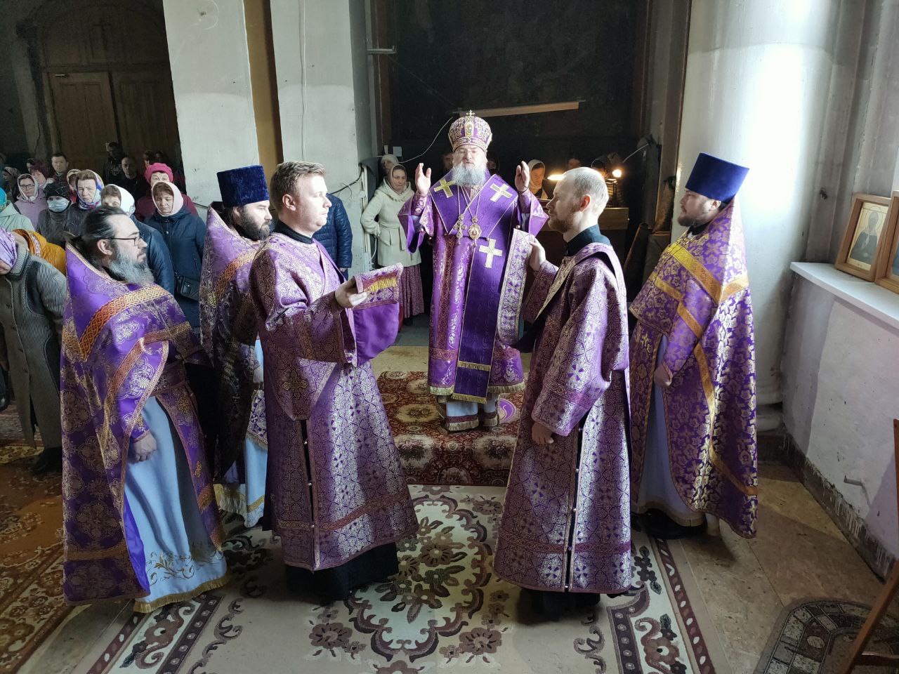 Его Преосвященству сослужили: благочинный округа, настоятель прихода – протоиерей Максим Садовников, протоиерей Антоний Хатунцев, иерей Стахий Гайсин, диакон Евгений Ковригин и иеродиакон Лука (Старостин).