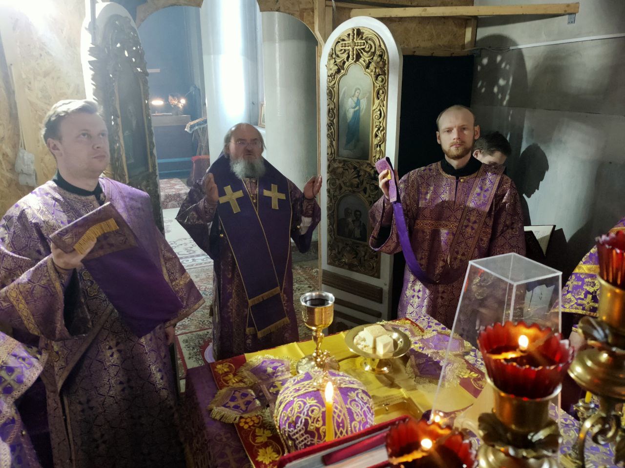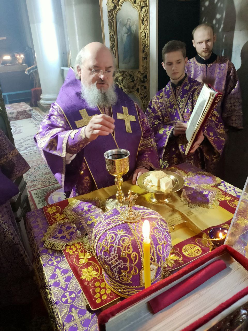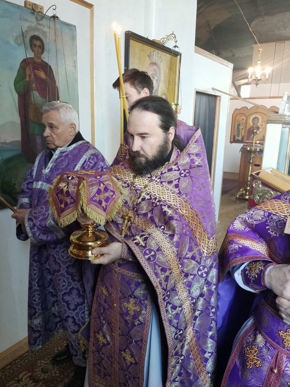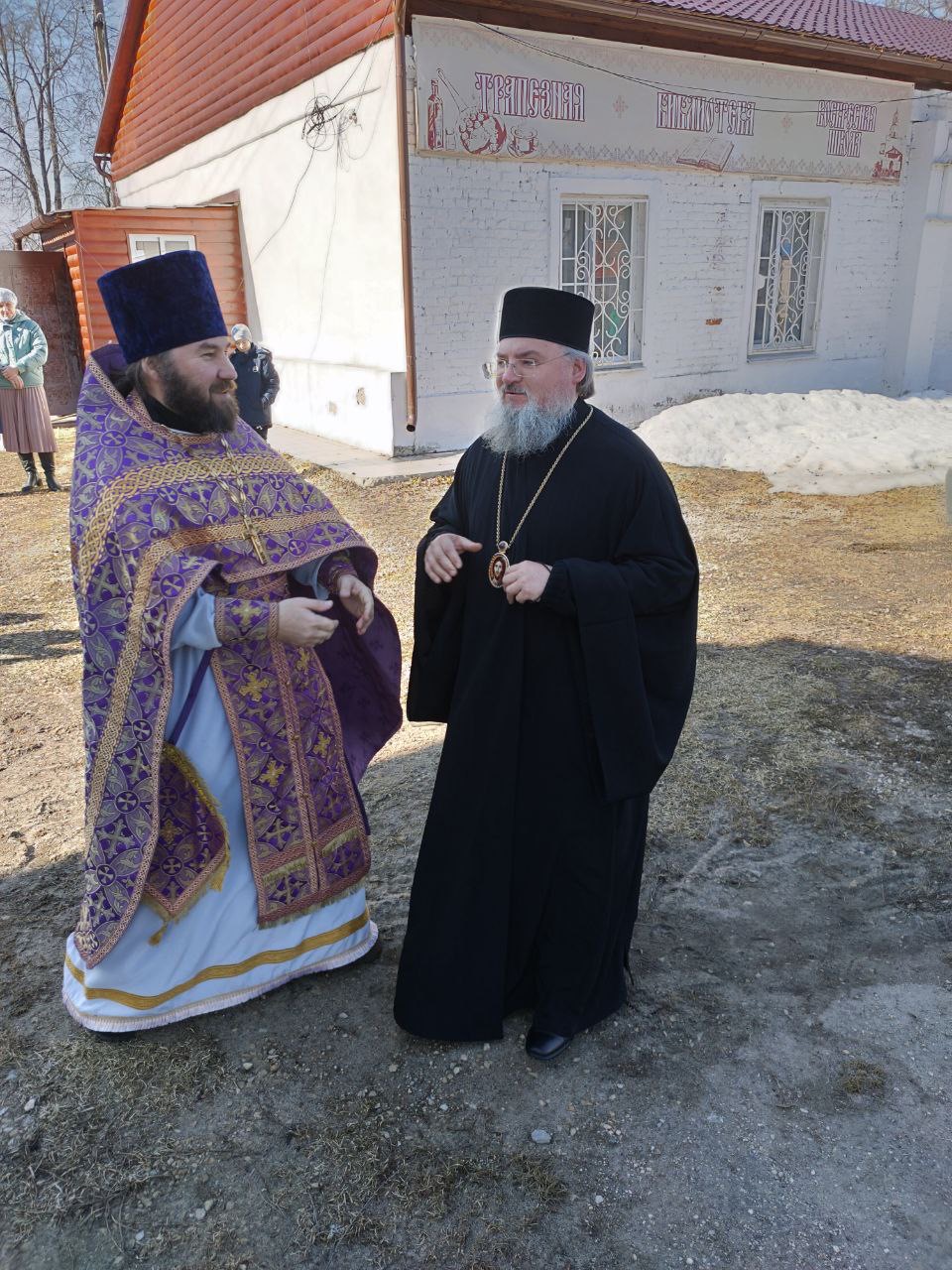 Его Преосвященству сослужили: благочинный округа, настоятель прихода – протоиерей Максим Садовников, протоиерей Антоний Хатунцев, иерей Стахий Гайсин, диакон Евгений Ковригин и иеродиакон Лука (Старостин).