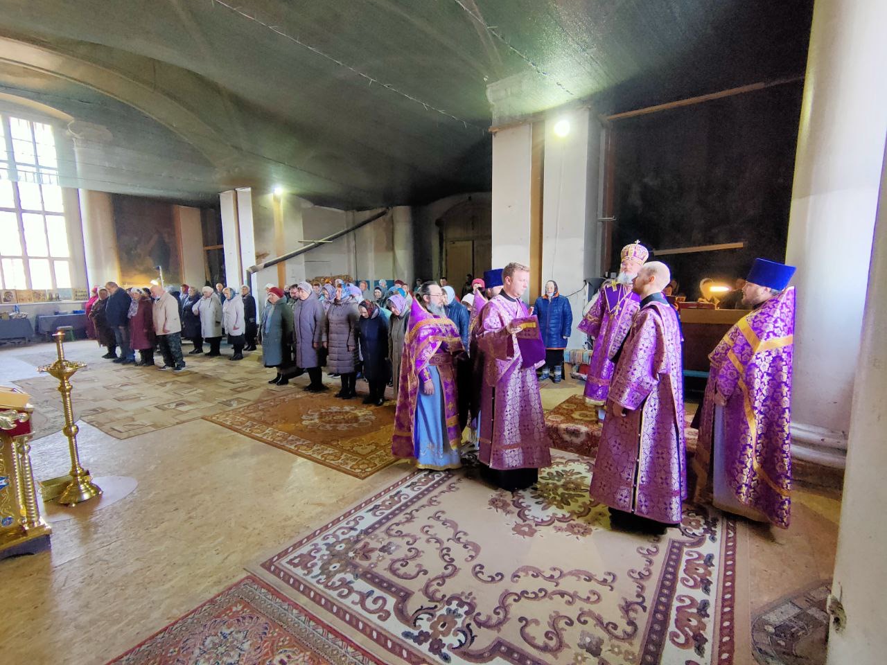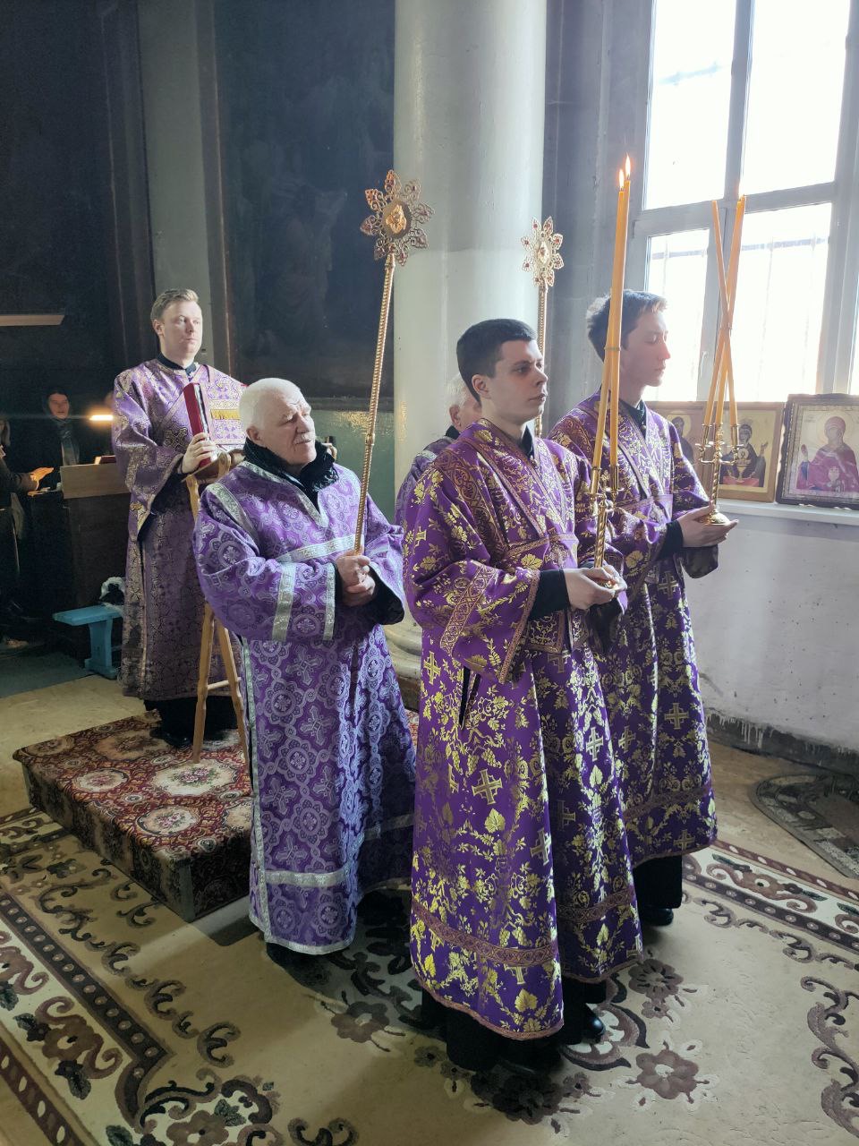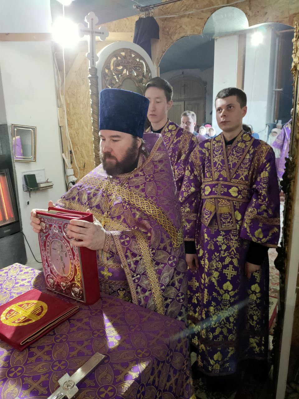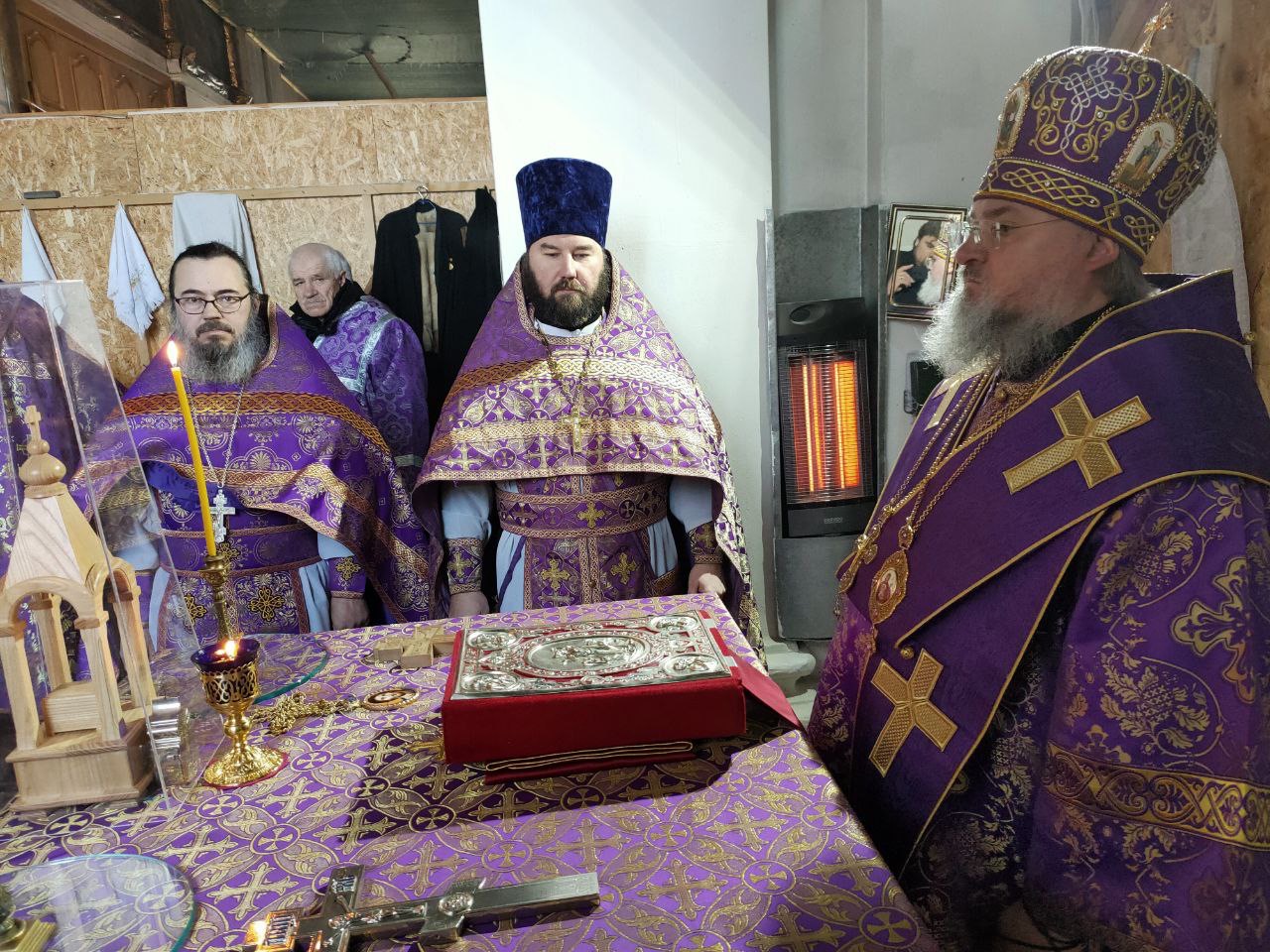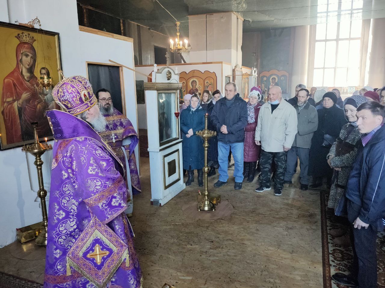 Его Преосвященству сослужили: благочинный округа, настоятель прихода – протоиерей Максим Садовников, протоиерей Антоний Хатунцев, иерей Стахий Гайсин, диакон Евгений Ковригин и иеродиакон Лука (Старостин).