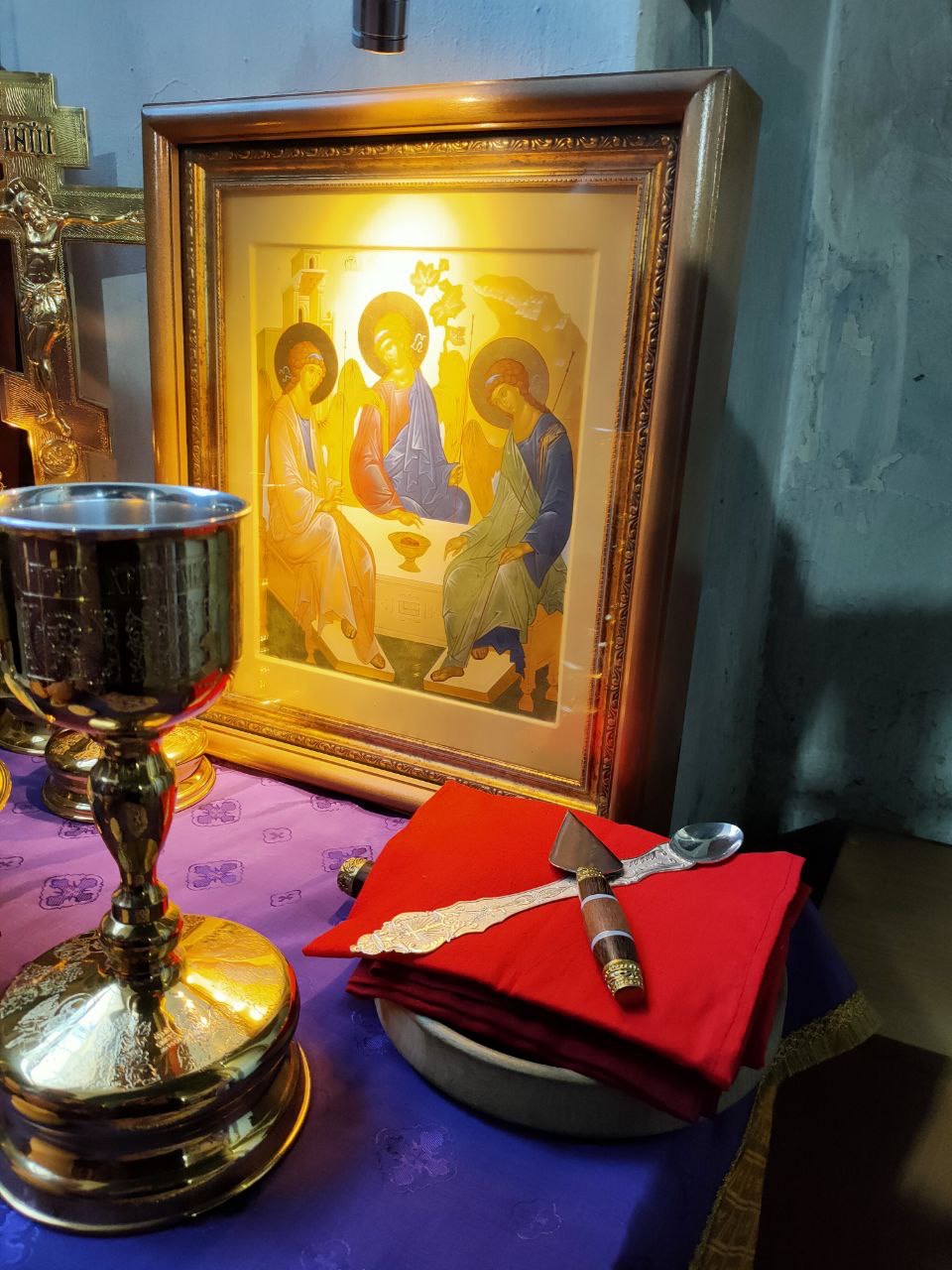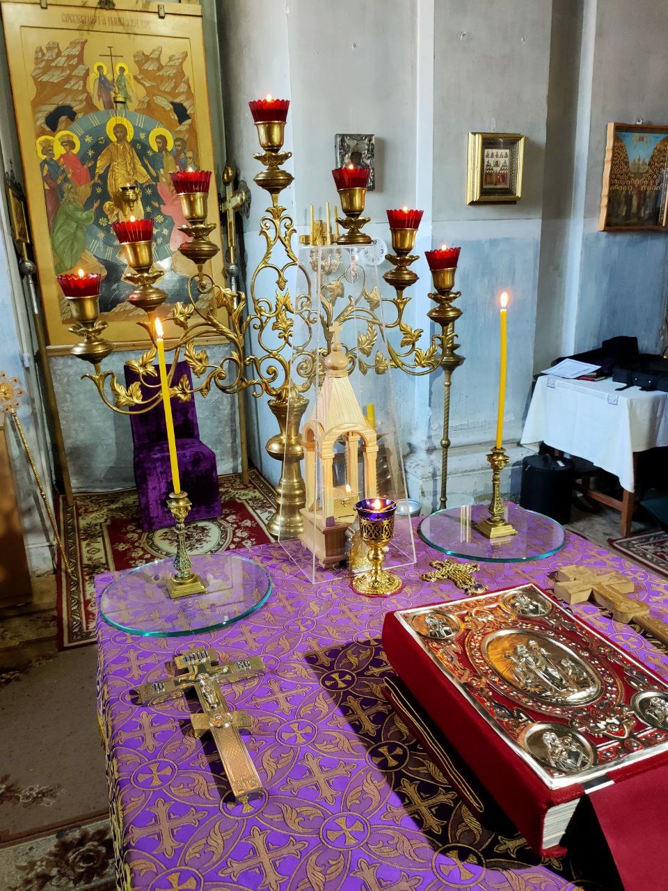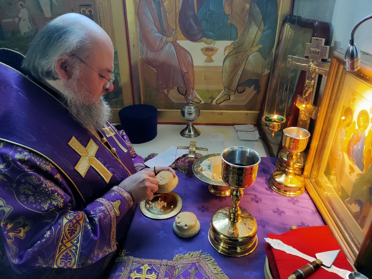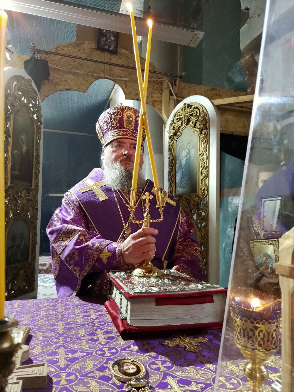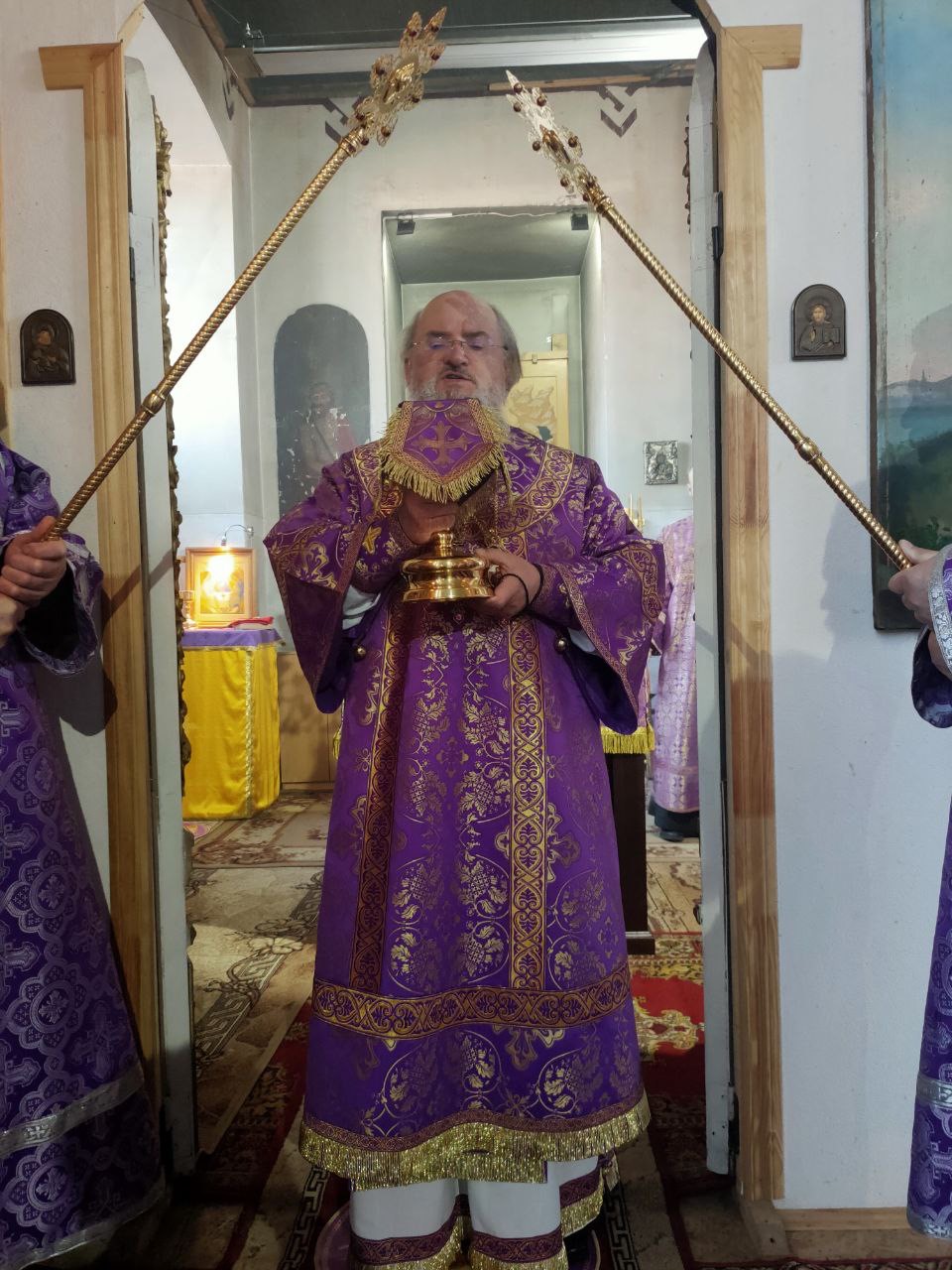 Его Преосвященству сослужили: благочинный округа, настоятель прихода – протоиерей Максим Садовников, протоиерей Антоний Хатунцев, иерей Стахий Гайсин, диакон Евгений Ковригин и иеродиакон Лука (Старостин).