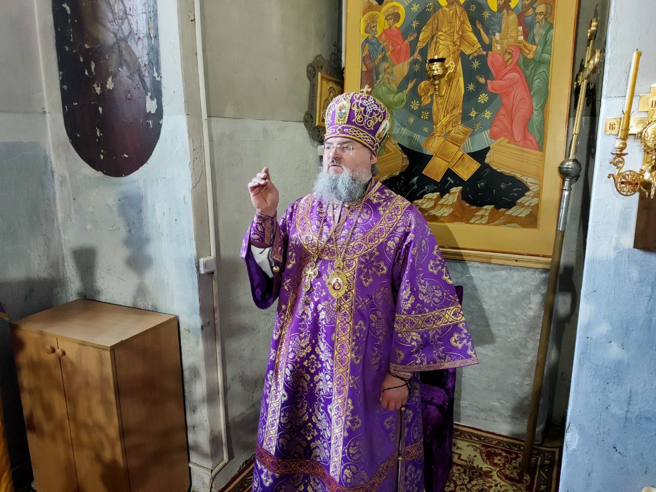 По отпусте литургии владыка обратился к богомольцам с проповедью.